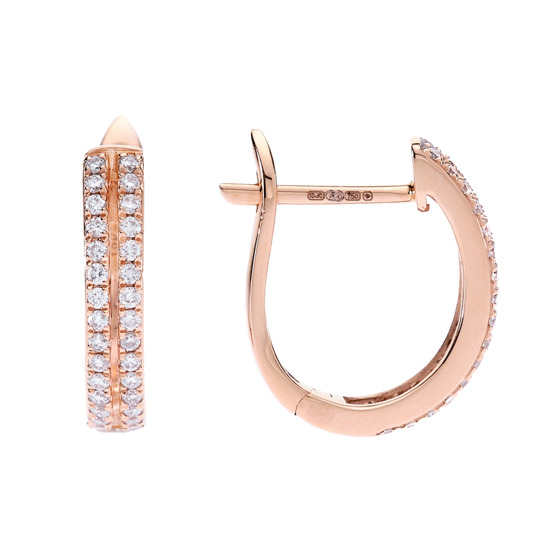 A brand new, unused, certified pair of natural diamond hooped earrings, set with brilliant cut diamonds, set in 18ct rose gold.