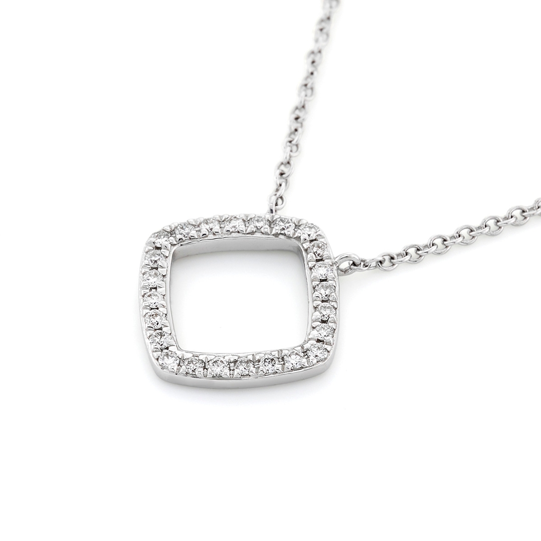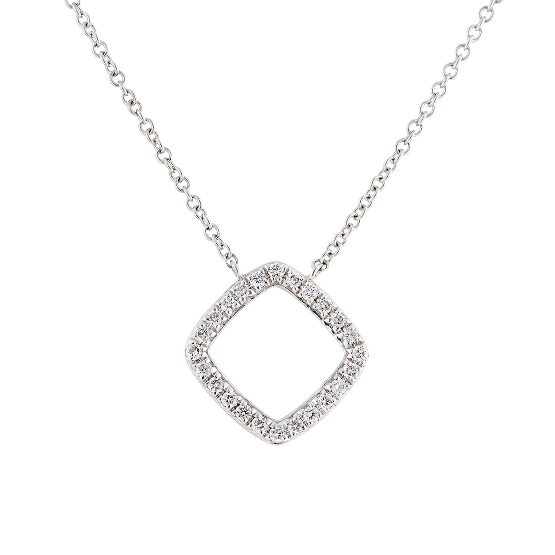 A brand-new, unused, certified natural diamond lozenge-shaped cluster pendant, set with a cluster of brilliant-cut diamonds, in 18ct white gold.