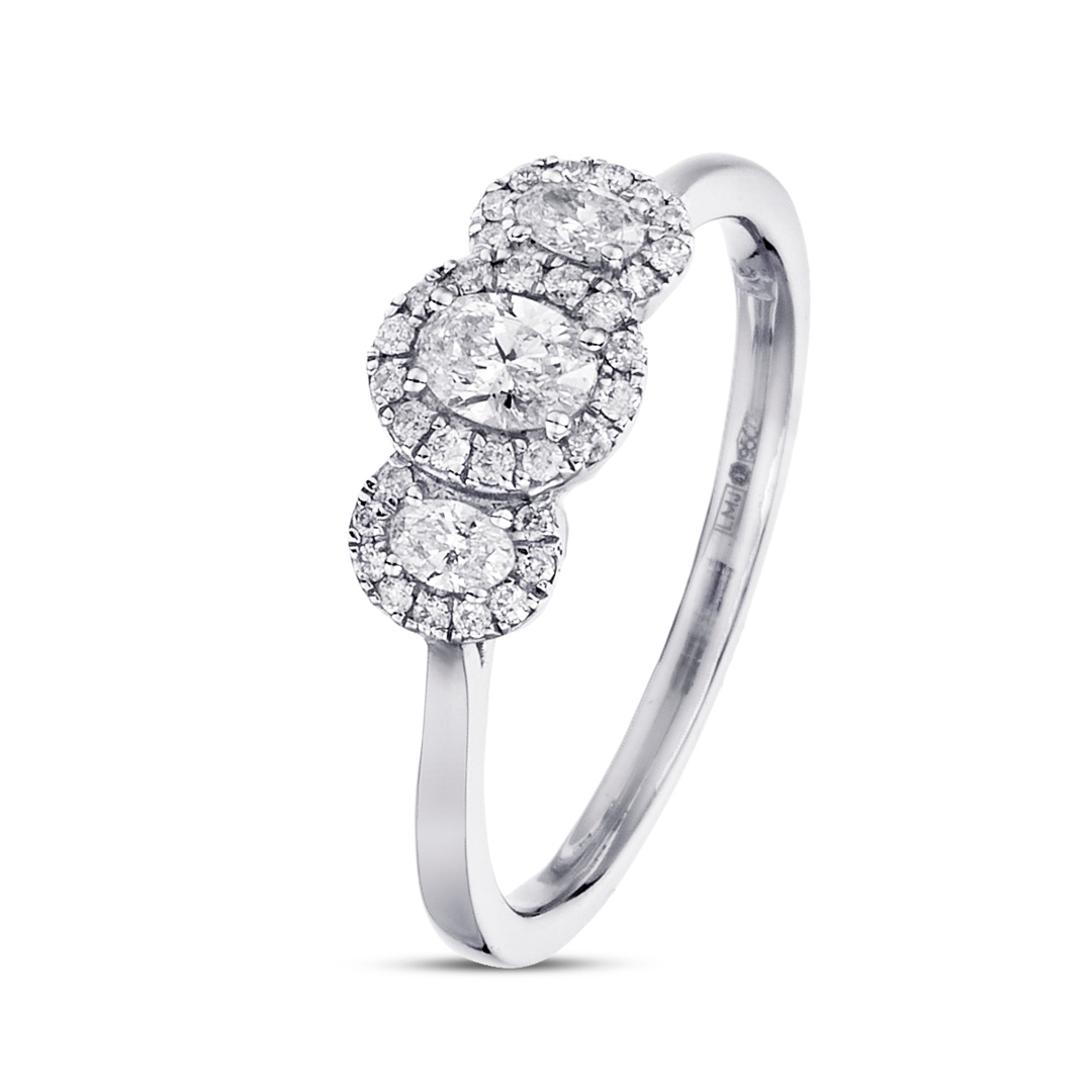 - > Natural Diamond Oval Shaped Trio Cluster Ring 0.54ct