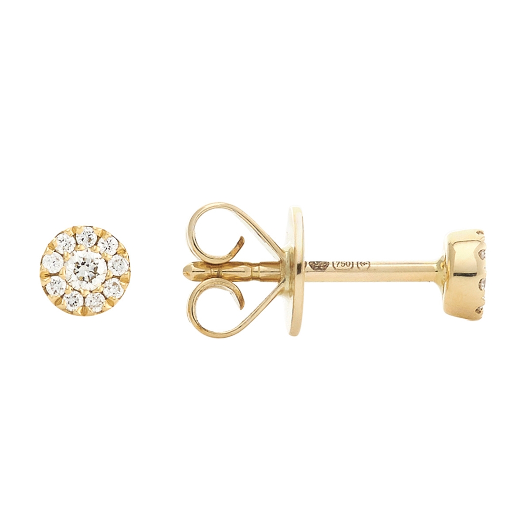 A brand-new, unused, certified pair of natural diamond round-shaped cluster earrings, set with a cluster of brilliant-cut diamonds, set in 18ct yellow gold.