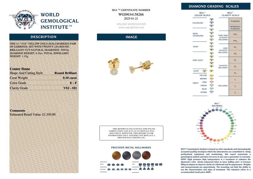 Accompanied by an independent valuation of £1,350.00, this exquisite pair represents both refined beauty and long-term investment value. Natural diamonds remain a symbol of prestige and permanence, admired for their rarity and timeless allure. A graceful and luxurious creation, destined to become a cherished addition to any fine jewellery collection.