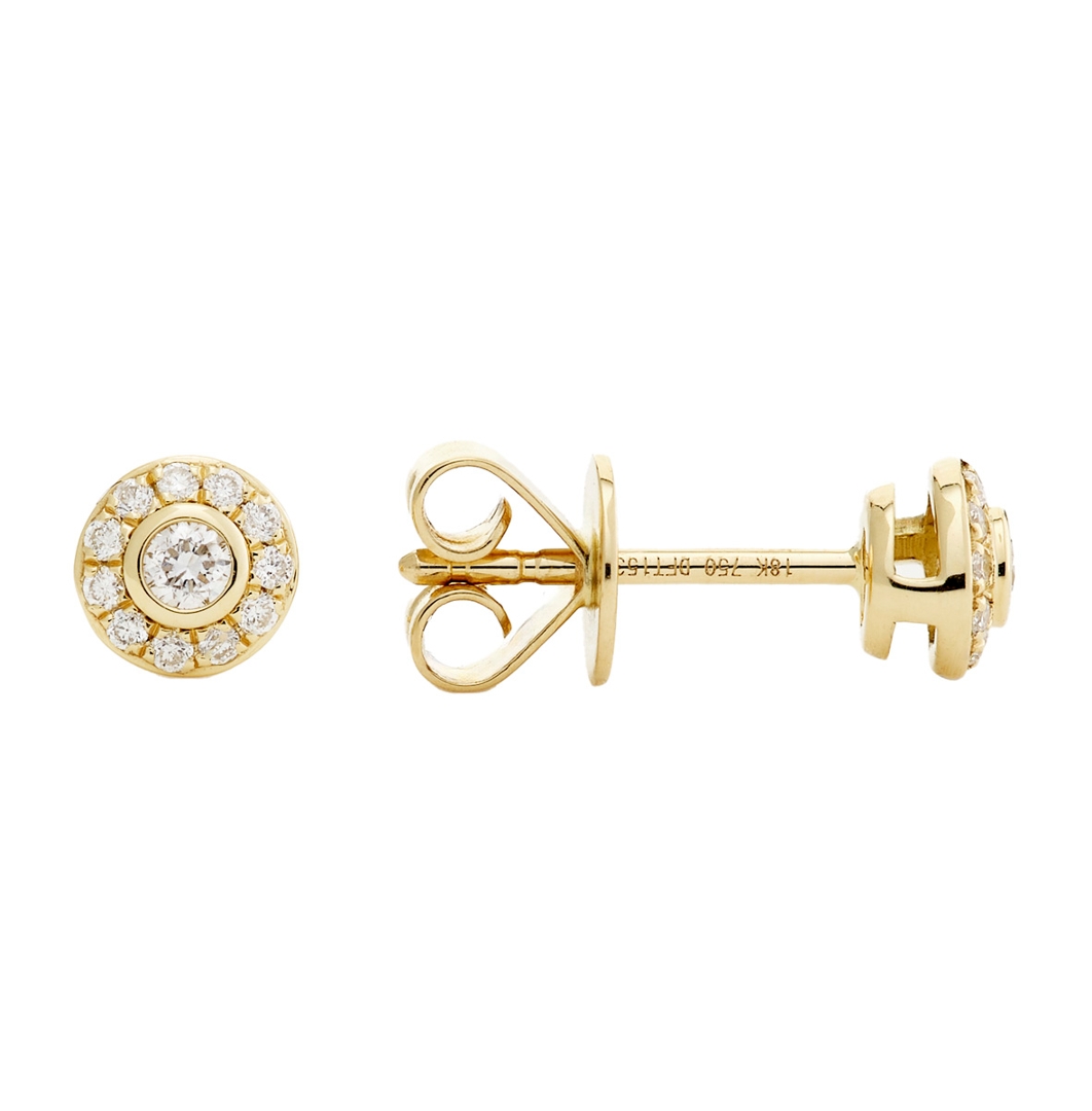 Set in luxurious 18ct yellow gold, weighing 1.62 grams, the rich warmth of the metal enhances the crisp sparkle of the diamonds, creating a stunning contrast that elevates the overall design. The round cluster paired with the classic halo setting creates a timeless silhouette, making these earrings a versatile choice for day and evening elegance.