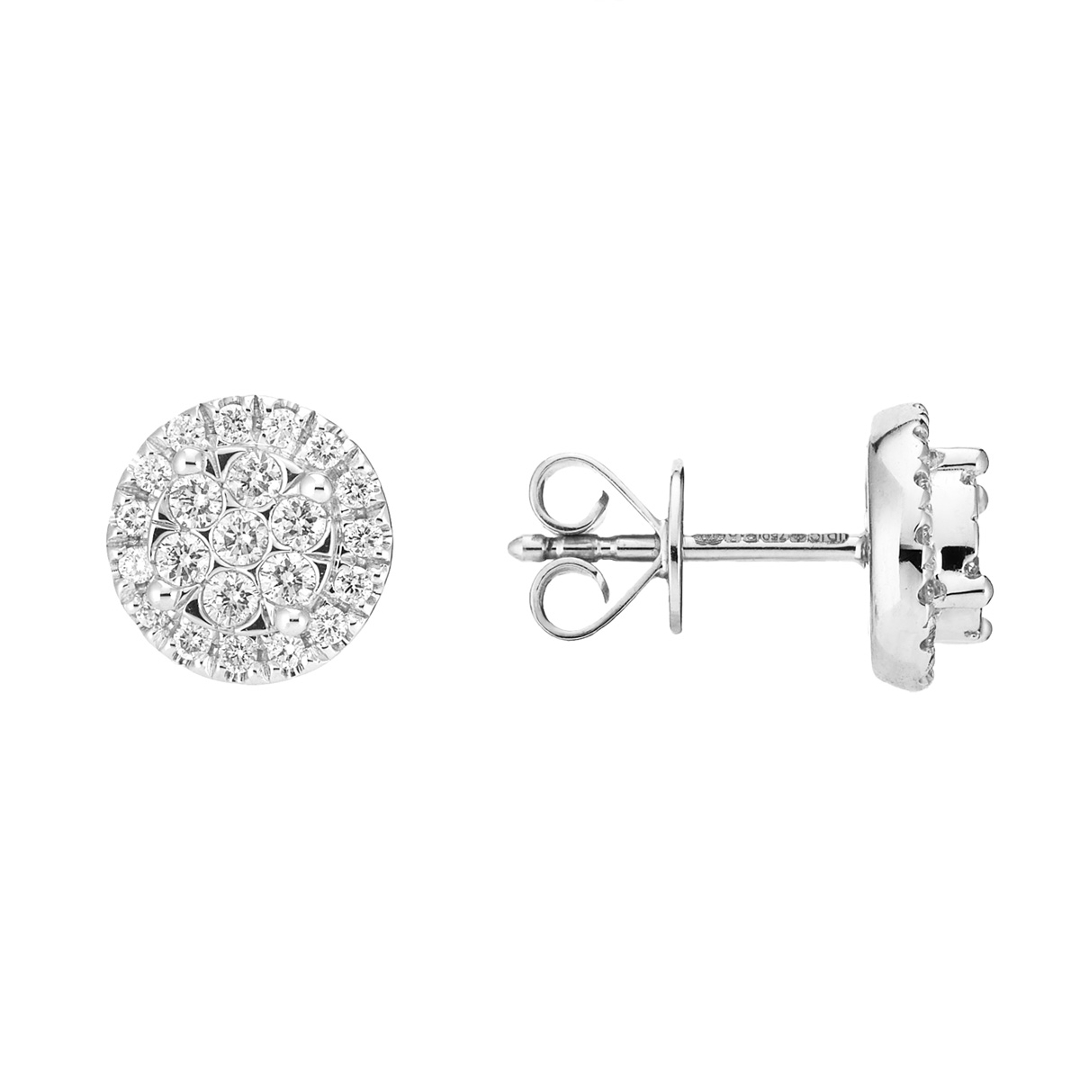 Crafted from highly polished 18ct white gold and weighing 3.22 grams, the round cluster design offers a classic silhouette with a refined, modern finish. The crisp white gold tone enhances the natural brilliance of the diamonds, allowing each facet to catch and reflect light with precision. These earrings offer the visual impact of a larger single stone while maintaining a graceful, wearable design perfect for both everyday sophistication and special occasions.