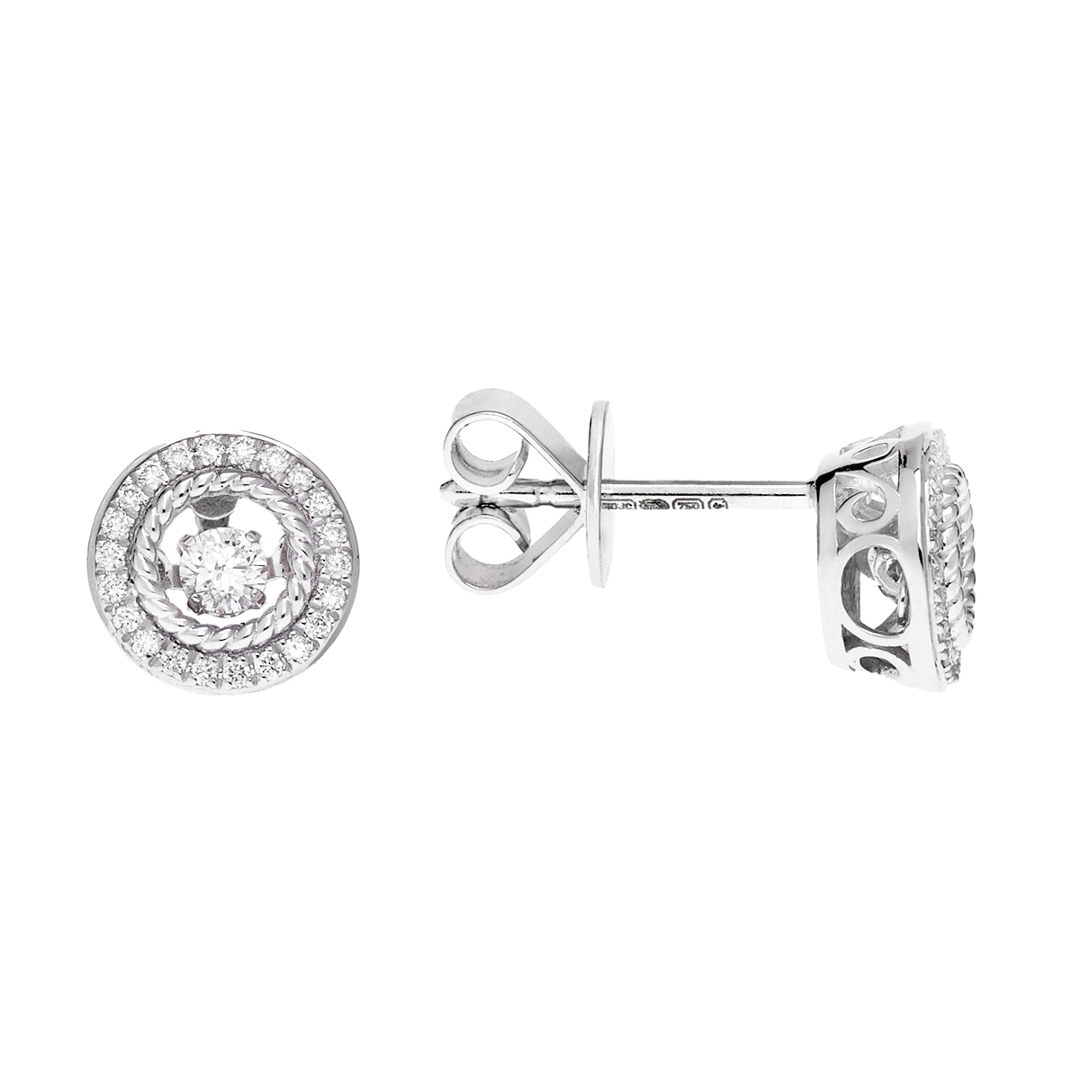 A brand-new, unused pair of certified 18ct white gold earrings showcasing the timeless beauty of natural diamonds. These exquisite, round-shaped earrings are meticulously set with brilliant-cut diamonds to highlight their captivating sparkle and elegance.