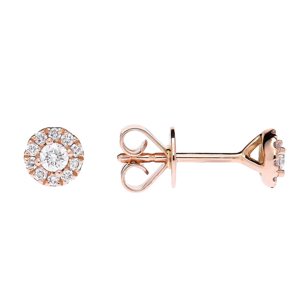 A brand new, unused, certified pair of natural diamond round-shaped earrings, set with brilliant cut diamonds, set in 18ct rose gold.