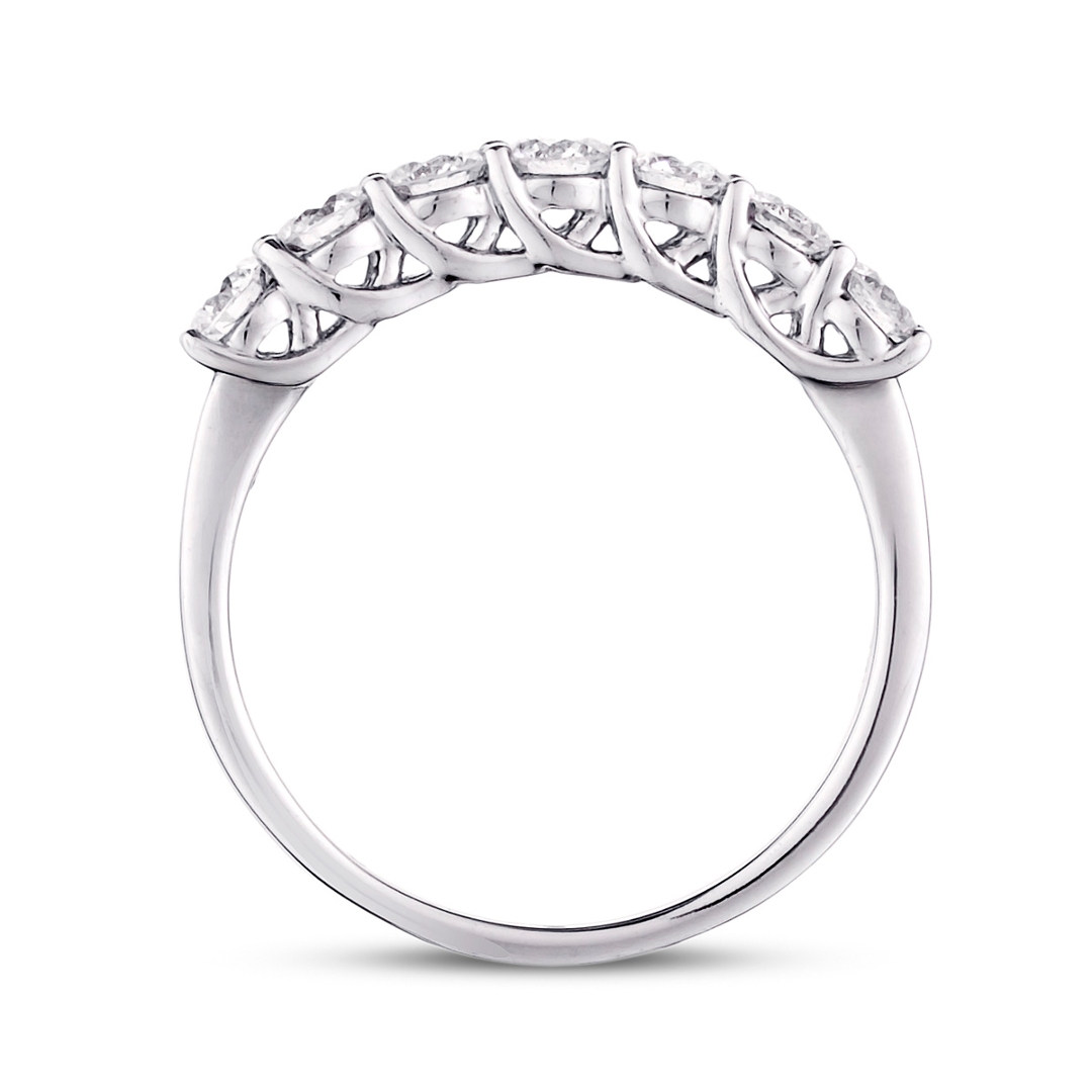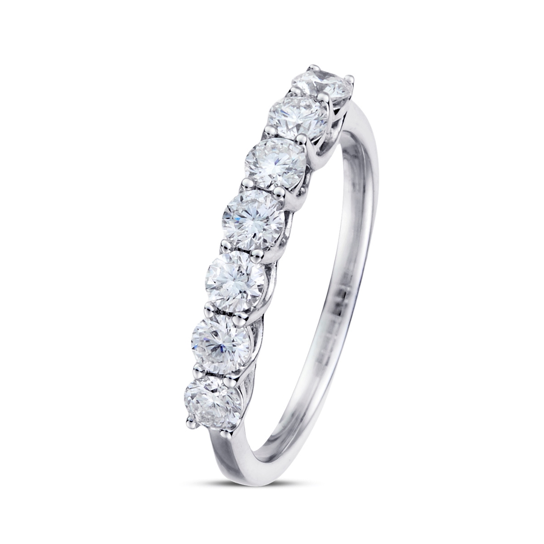 Natural diamonds are renowned for their exceptional beauty and rarity, and this ring sophisticatedly showcases these qualities. The seven brilliant-cut diamonds are carefully set to create a continuous flow of sparkle, symbolising timeless love and commitment. The 18ct white gold setting enhances the diamonds’ natural radiance, providing a luxurious backdrop that elevates the overall design.