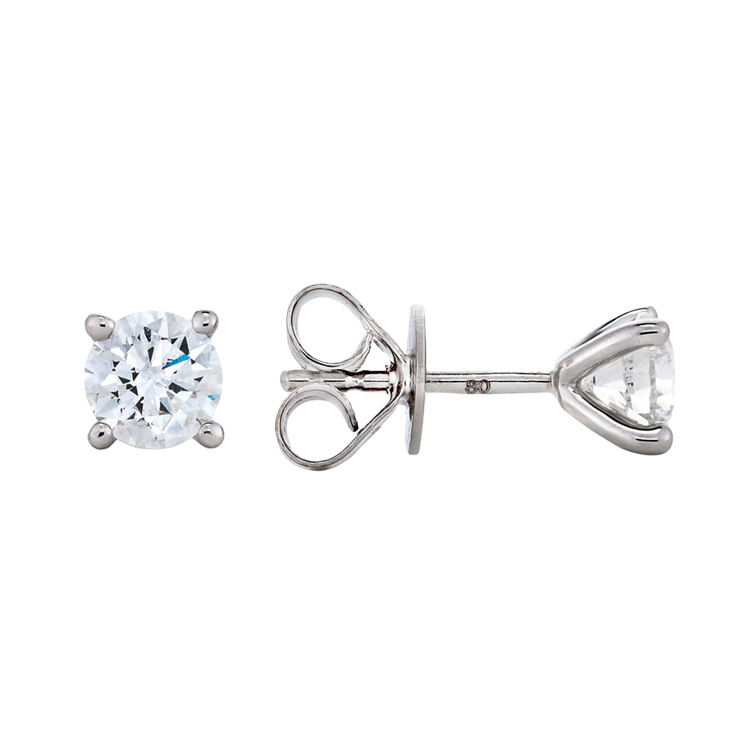 A brand-new, unused, certified pair of natural diamond solitaire earrings, with two brilliant-cut diamonds, set in 18ct white gold.