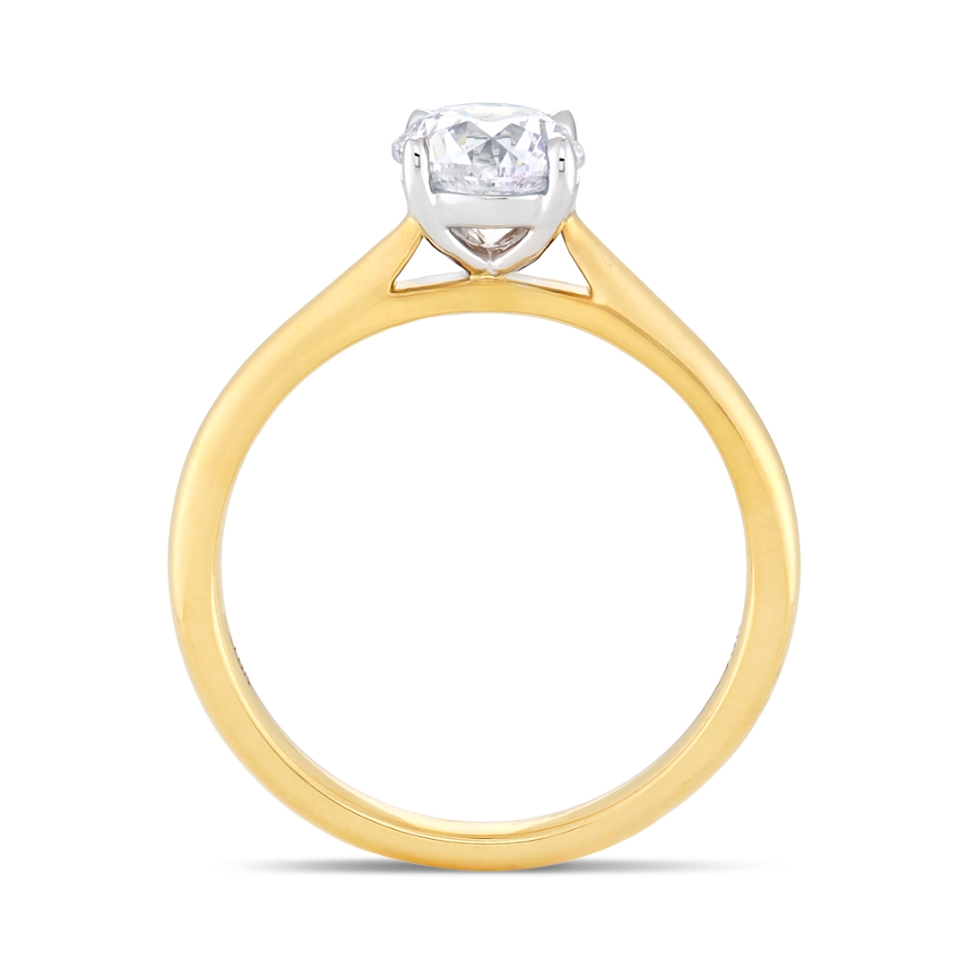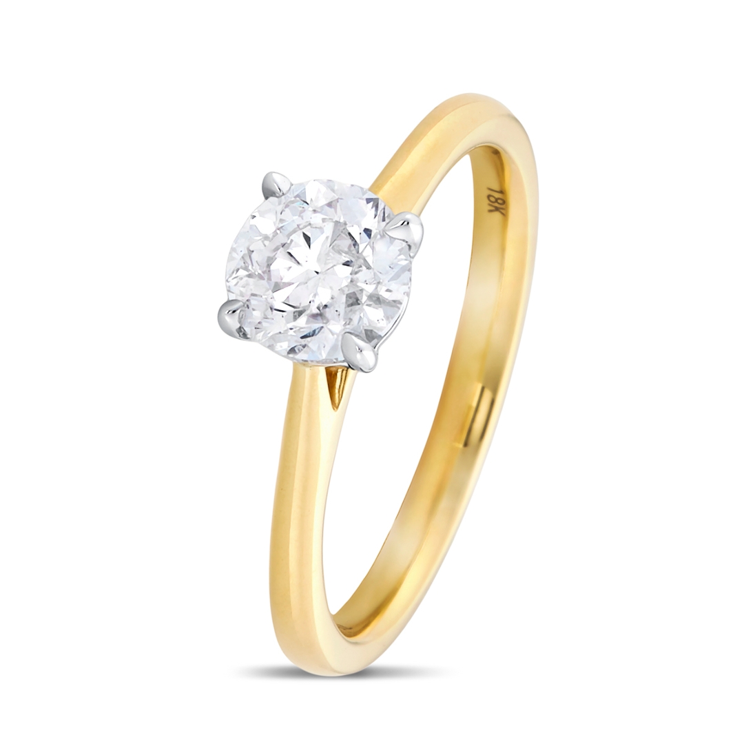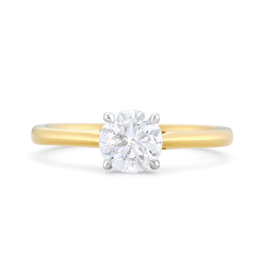 A brand-new, unused, certified natural diamond solitaire engagement ring, set with one brilliant cut diamond at the centre, set in 18ct yellow & white gold.
