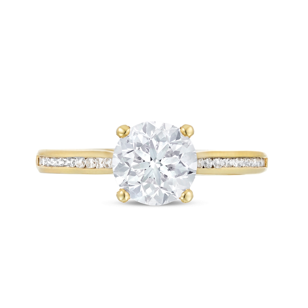 A brand-new, unused certified natural diamond solitaire engagement ring, centred around a striking 1.51ct brilliant-cut diamond, enhanced by a delicate cluster of brilliant-cut diamonds along the shoulders, all set in 18ct yellow gold. The centre stone boasts an impressive F colour, delivering a bright and colourless appearance, while its SI1 clarity ensures excellent visual performance. The additional shoulder diamonds, totalling 0.16ct, range from F–G colour with VS2–SI1 clarity, providing a refined accent that enhances the overall sparkle without detracting from the centrepiece.