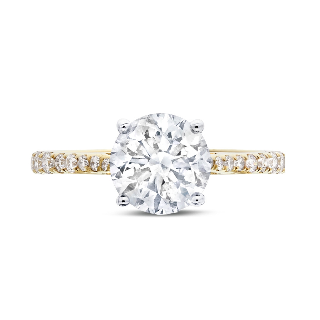A brand-new, unused certified natural diamond solitaire engagement ring, crafted in a distinguished combination of platinum and 18ct yellow gold, centred with a substantial 2.08ct brilliant-cut diamond. Graded H colour and SI2 clarity, the centre stone displays a soft warmth complemented by lively brilliance, offering impressive scale and a confident presence within a timeless and elegant setting.
