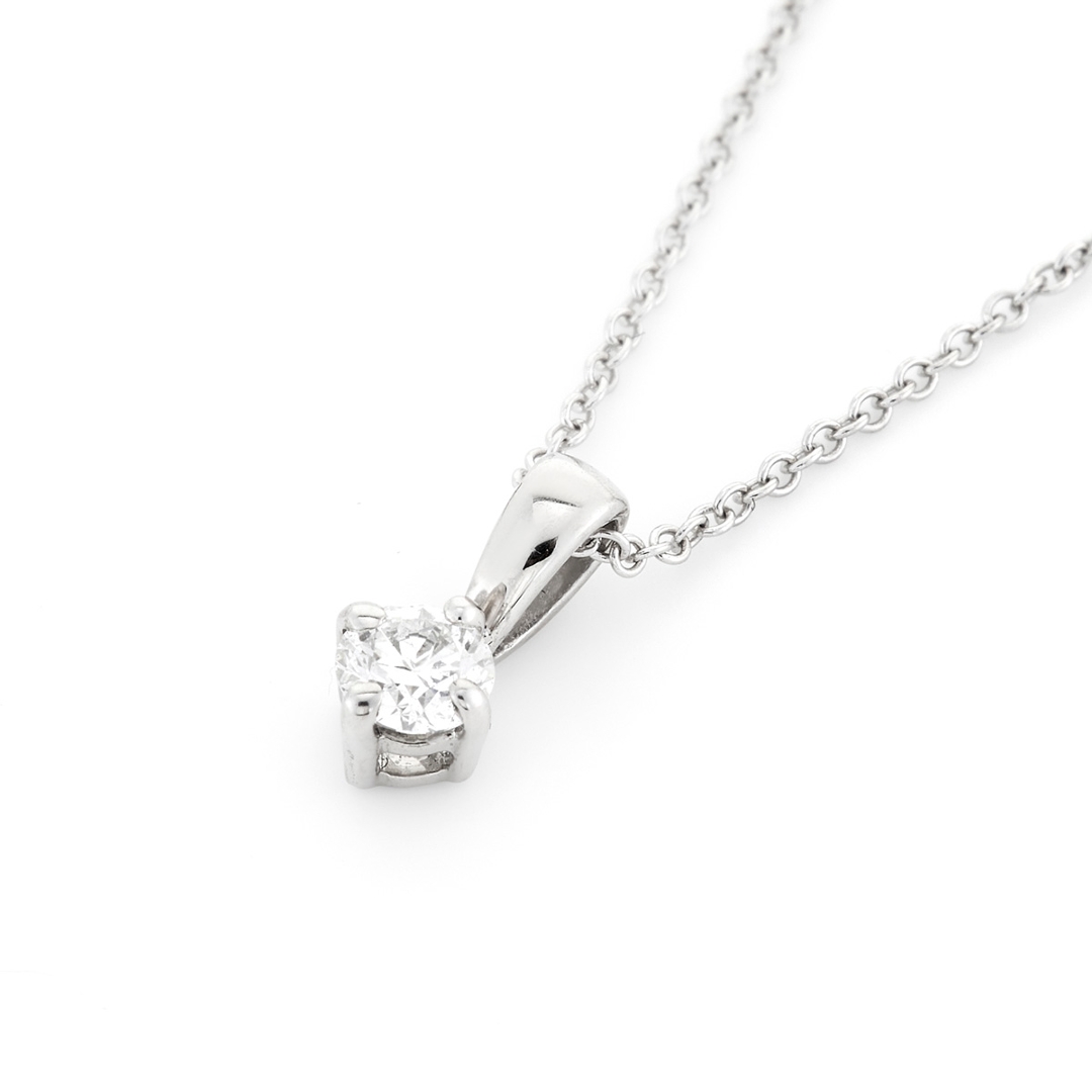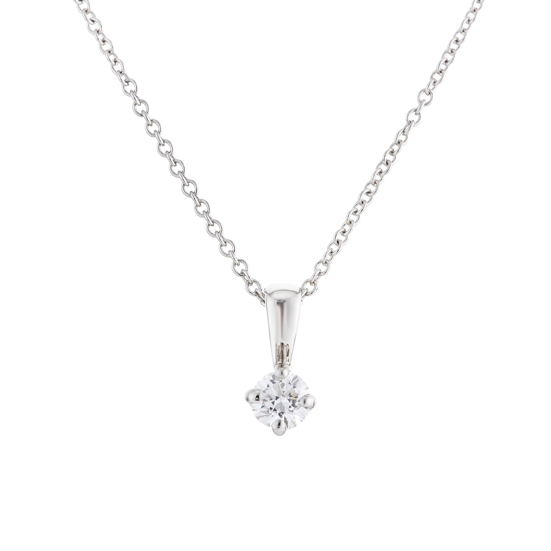 A brand new, unused, certified natural diamond solitaire pendant, with one brilliant cut diamond, set in 18ct white gold.