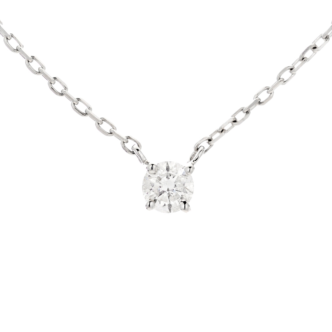 A brand-new, unused, certified natural diamond solitaire pendant, set with a brilliant cut diamond, set in 18ct white gold.