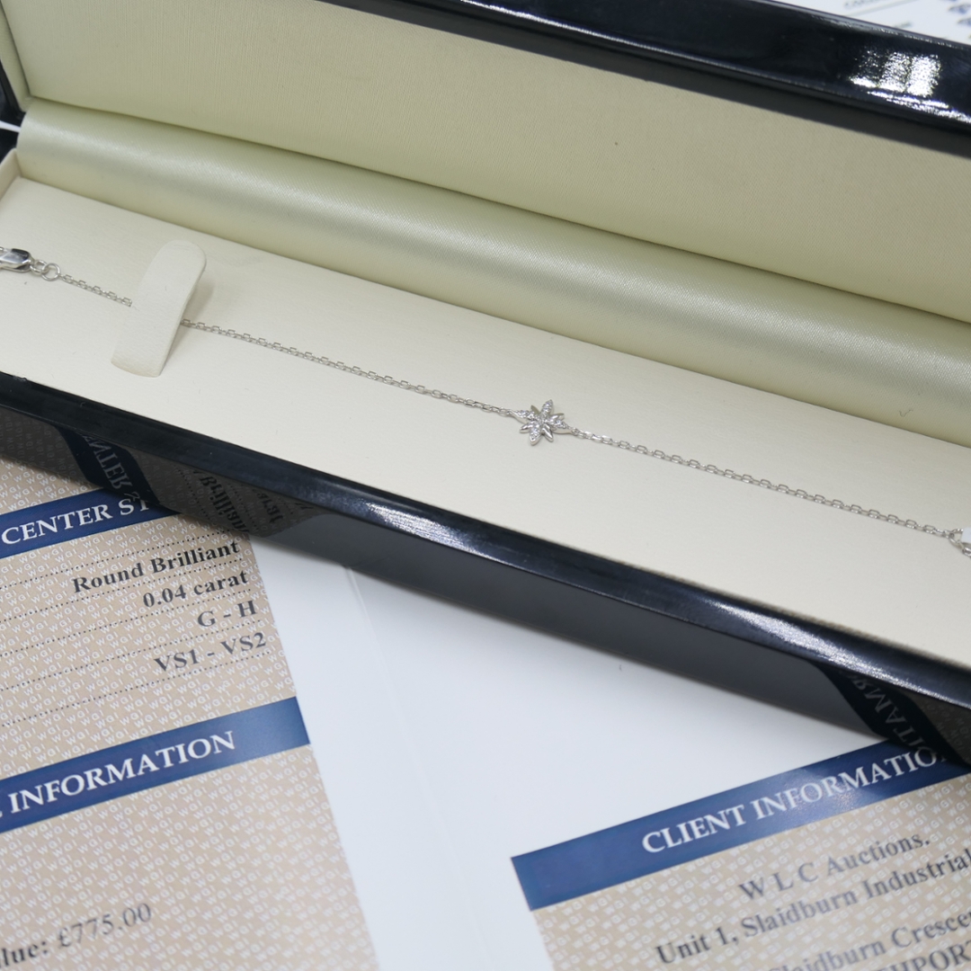 This bracelet, professionally valued at £775, blends delicate beauty with exceptional craftsmanship. Whether chosen to celebrate a milestone, mark a meaningful moment, or add a touch of sparkle to everyday life, this piece is designed to be worn and treasured. With its timeless style and heartfelt symbolism, this bracelet is a radiant addition to any fine jewellery collection.