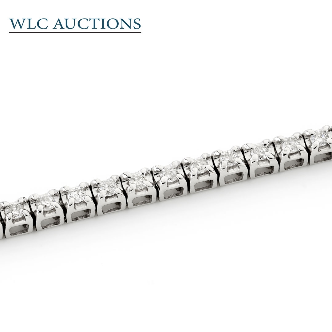 A brand new, unused, certified natural tennis bracelet, set with a cluster of brilliant cut diamonds, set in 18ct white gold.
