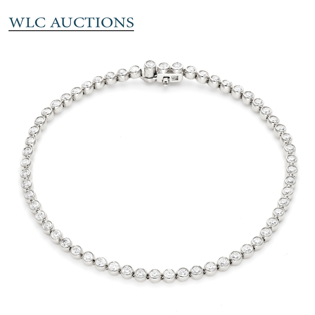 Valued at £8,175.00, this tennis bracelet blends exquisite craftsmanship with investment potential. The 18ct white gold setting enhances the diamonds’ natural brilliance, allowing them to shine from every angle. The total weight is 7.89 grams. Its elegant design ensures it will never go out of style, making it versatile for any occasion. Whether worn as a statement piece or for everyday wear, this bracelet offers beauty and lasting value, ensuring it will continue to be admired and appreciated for years to come.