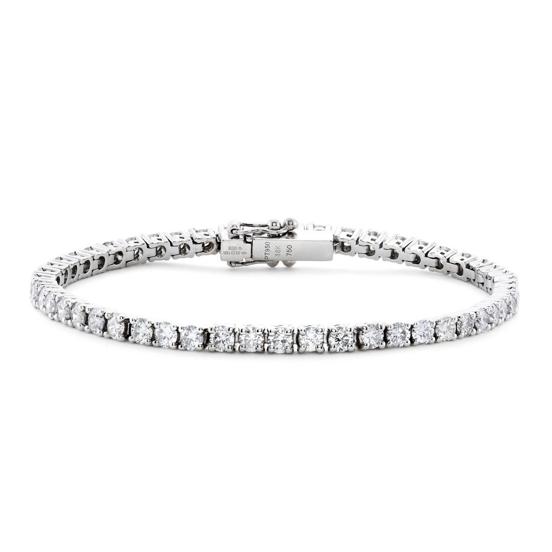 A brand-new, unused certified natural diamond tennis bracelet that exudes elegance, brilliance and timeless craftsmanship. This exquisite piece is adorned with a continuous cluster of brilliant-cut natural diamonds, totalling 5.01ct, each expertly matched for exceptional sparkle and symmetry. The diamonds are graded G–H in colour and SI1–SI2 in clarity, offering an outstanding display of fire and radiance. The combination of platinum and 18ct white gold provides both strength and sophistication, with the metals’ cool tones perfectly complementing the diamonds’ luminous white brilliance. Measuring 18cm in length and weighing 18.70 grams, this bracelet delivers a luxurious presence on the wrist while ensuring comfort and durability. With a professional valuation of £15,815, it reflects impeccable quality and enduring prestige.