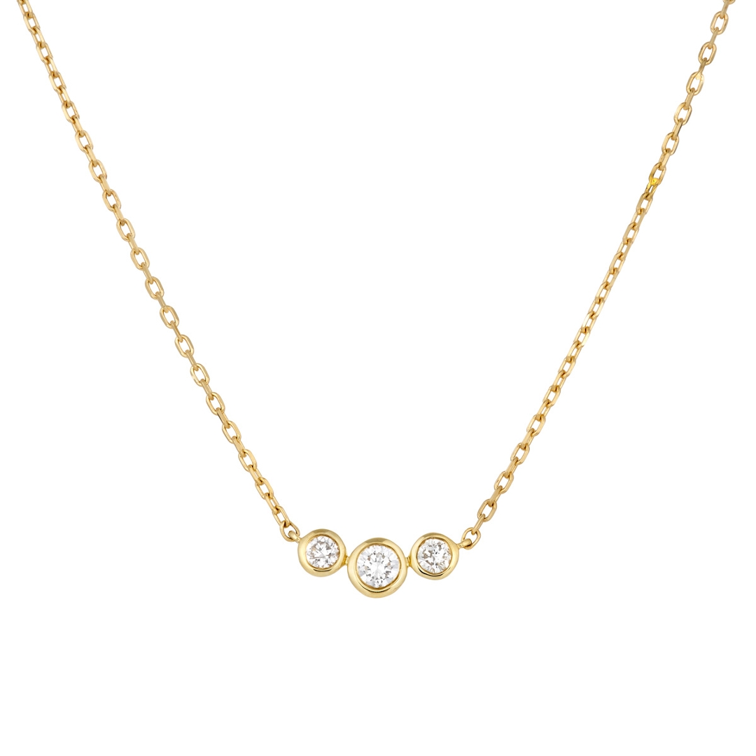 A brand-new, unused, certified natural diamond three-stone cluster pendant, set with three brilliant cut diamonds, set in 18ct yellow gold.