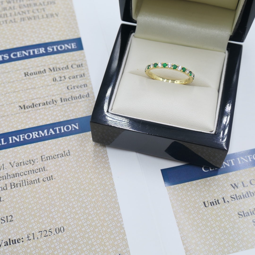 - > Natural Emerald 0.23ct & Diamond 0.21ct Eternity Ring