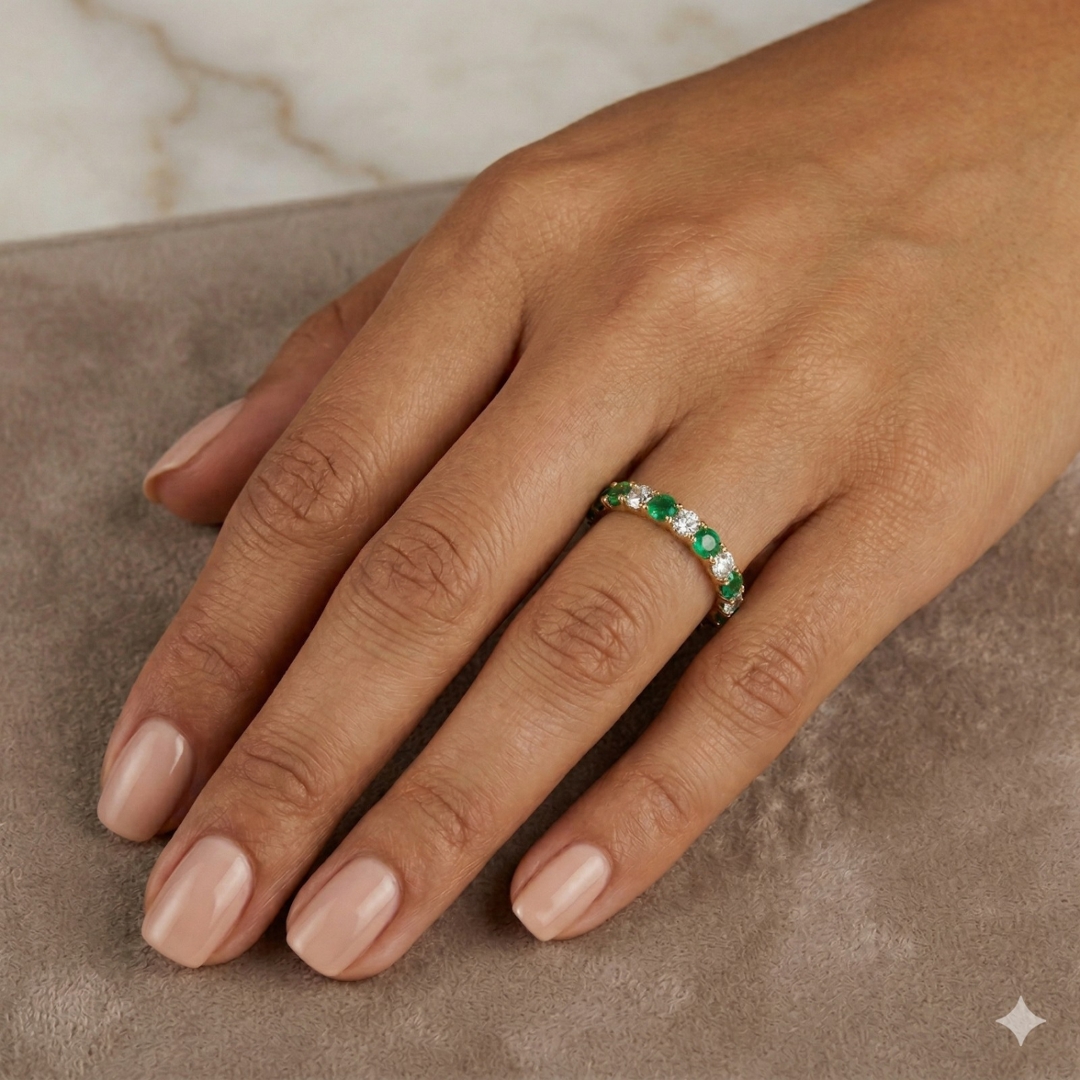 - > Natural Emerald 0.51ct & Diamond 0.49ct Eternity Ring