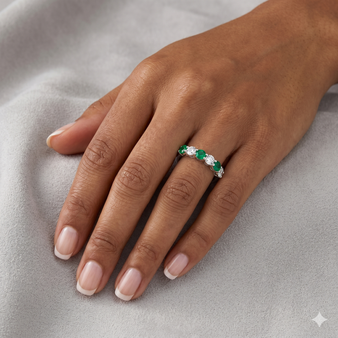 - > Natural Emerald 0.61ct & Diamond 0.47ct Eternity Ring