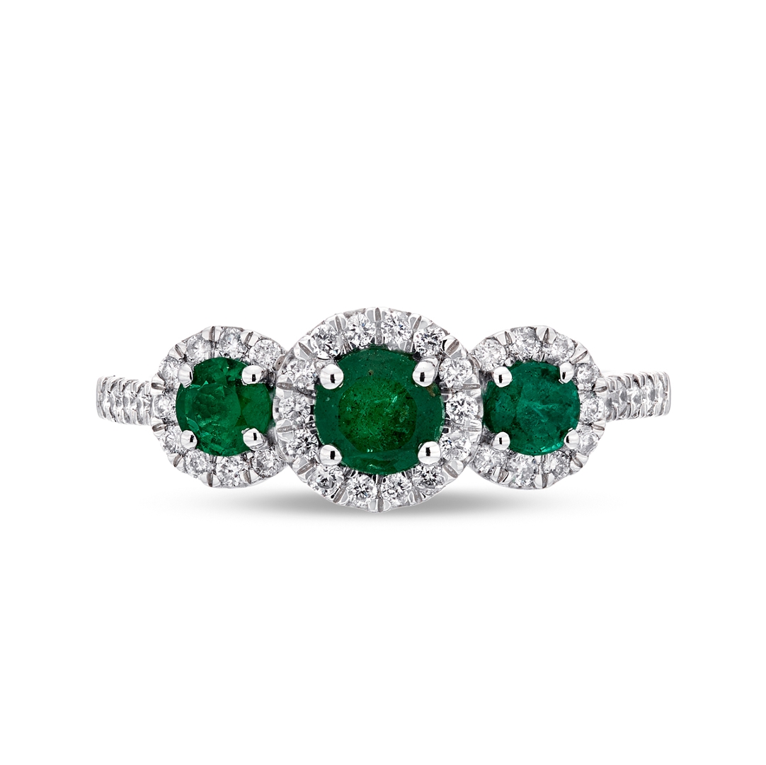 - > Natural Emerald 0.67ct & Diamond 0.29ct Round Shaped Trio Cluster Ring