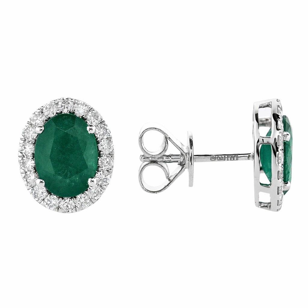 - > Natural Emerald 2.33ct & Diamond 0.49ct Oval Shaped Cluster Earrings