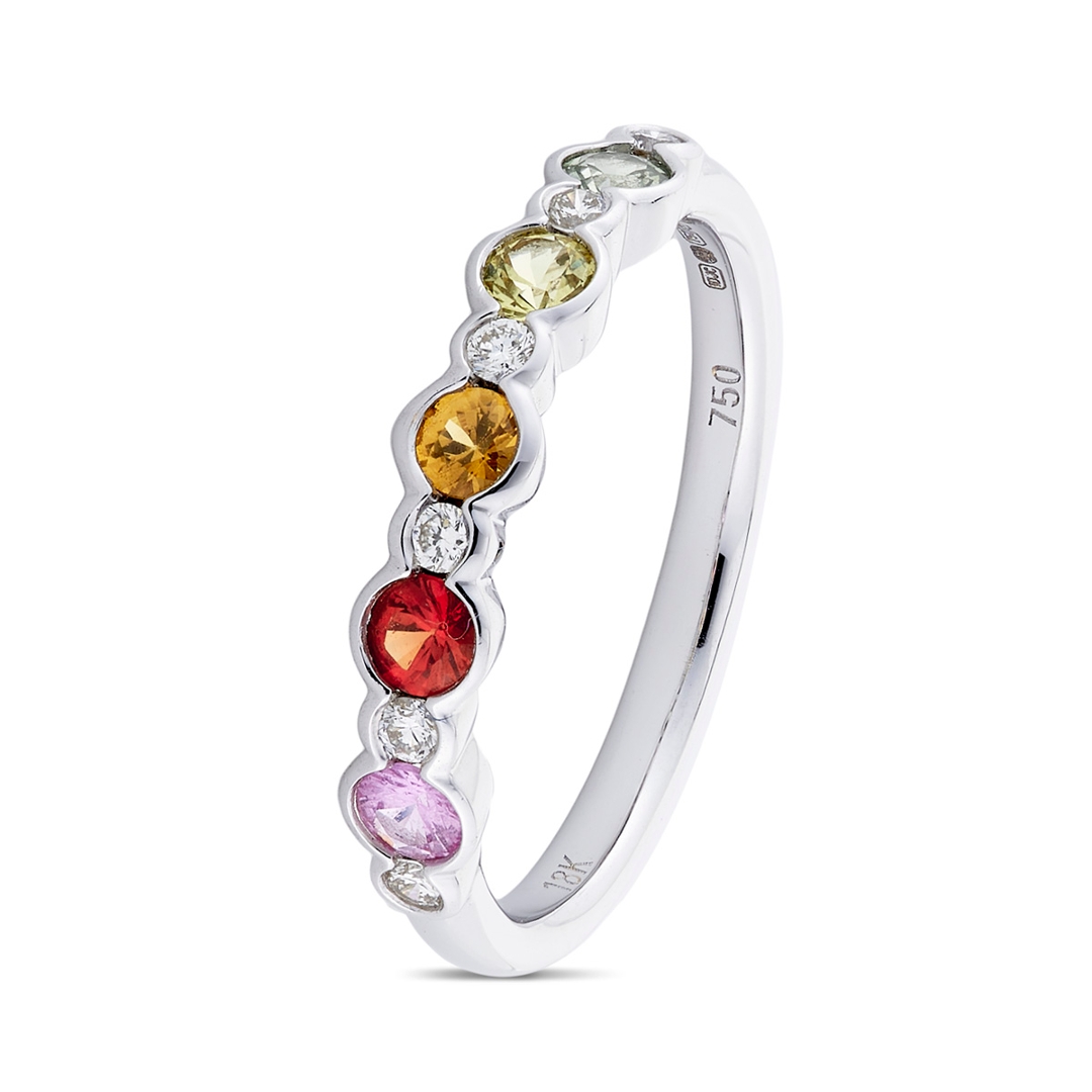 - > Natural Multi Coloured Sapphire 0.49ct & Diamond 0.11ct Eternity Ring