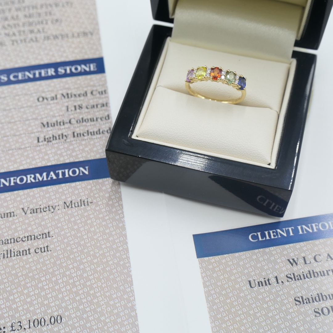 - > Natural Multi Coloured Sapphire 1.18ct & Diamond 0.10ct Eternity Ring