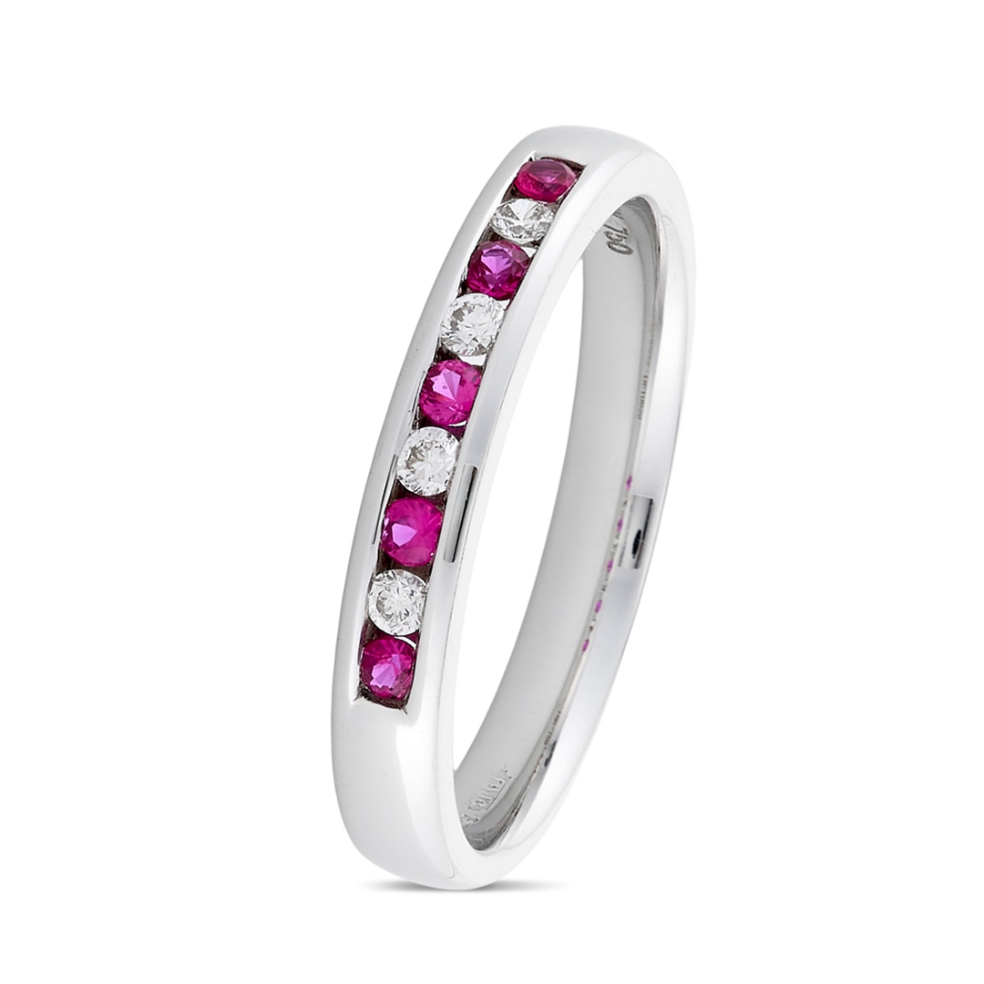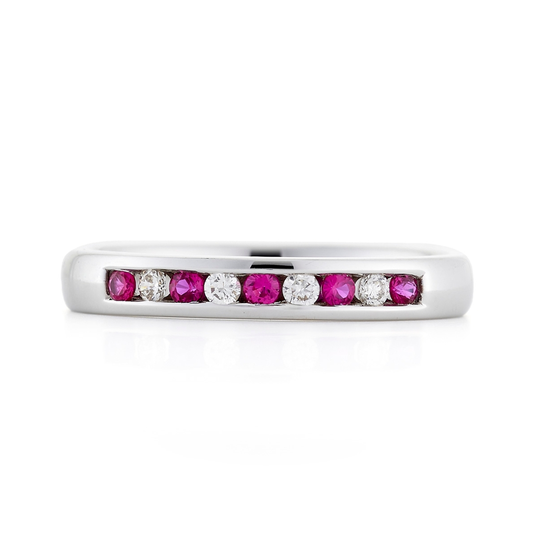 - > Natural Pink Sapphire 0.13ct & Diamond 0.09ct Eternity Ring