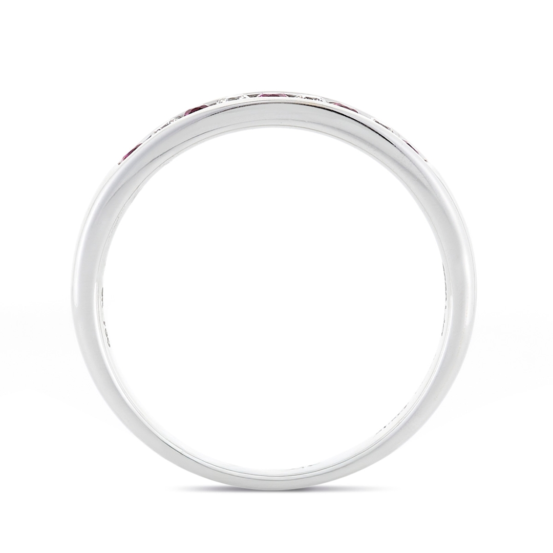 Crafted from polished 18ct white gold and weighing 3.05 grams, the band offers a clean, modern finish that allows the gemstones to shine with clarity and sophistication. The alternating pattern of pink sapphires and diamonds strikes a perfect balance, making it a lovely choice for everyday wear or as a meaningful statement on special occasions.