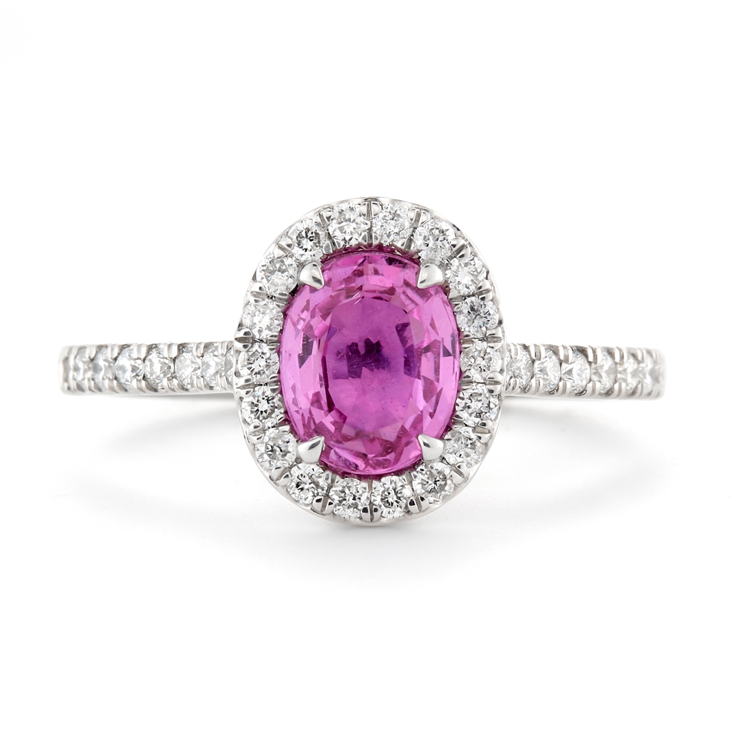 - > Natural Pink Sapphire 1.48ct & Diamond 0.40ct Oval Shaped Cluster Ring