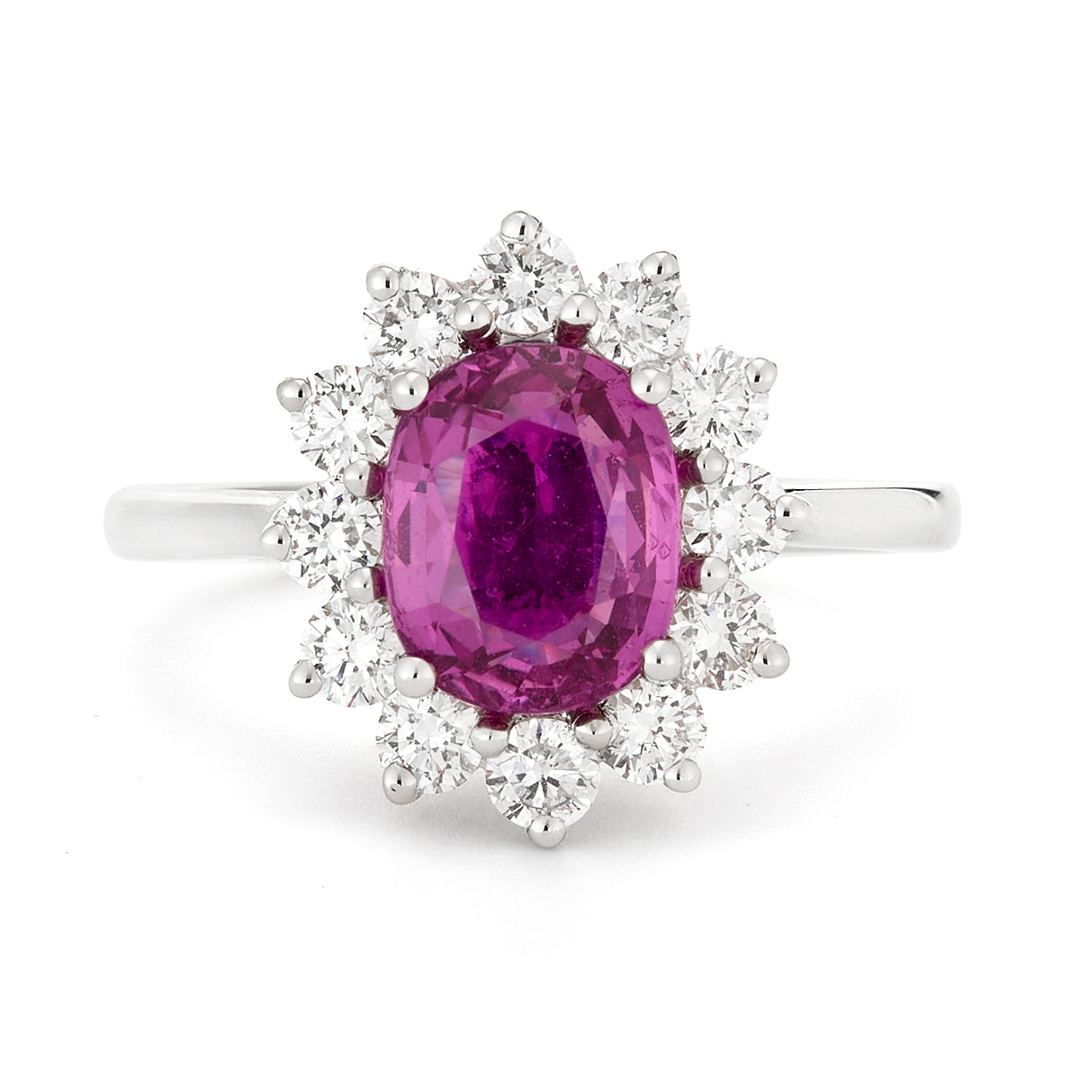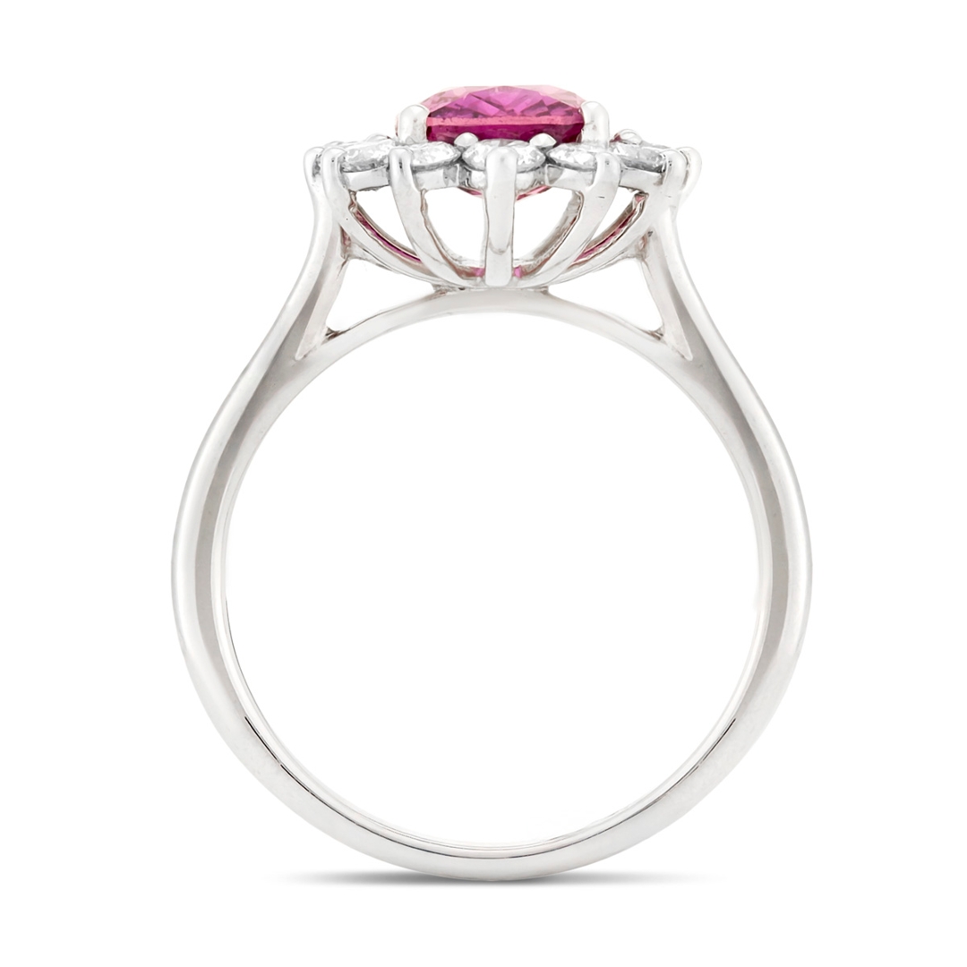 - > Natural Pink Sapphire 2.56ct & Diamond 0.82ct Cluster Ring