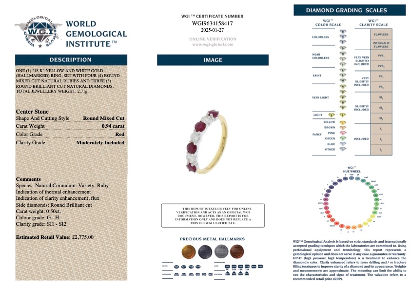 A brand-new, unused, certified 18ct white gold eternity ring, this exquisite piece is a perfect combination of elegance and expert craftsmanship. At its heart, a radiant cluster of round-cut rubies, totalling 0.94ct, glows with a deep red hue, symbolising passion, love, and prosperity. A shimmering arrangement of brilliant-cut diamonds, carefully set alongside the rubies, enhances their vibrancy with dazzling brilliance. The eternity design represents everlasting beauty and commitment, making this ring a meaningful and luxurious addition to any fine jewellery collection. Crafted in 18ct white gold, the sleek, modern metal setting contrasts sharply with the fiery rubies and sparkling diamonds.