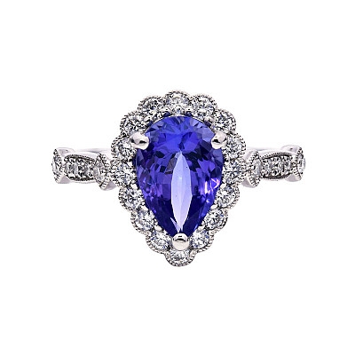 - > Natural Tanzanite 1.55ct & Diamond 0.39ct Pear Shaped Cluster Ring
