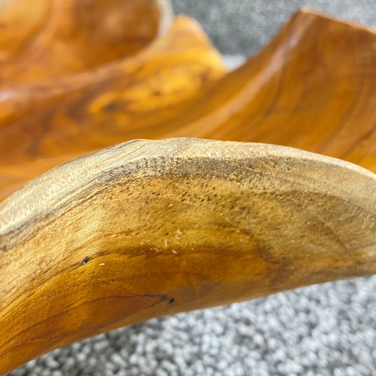 The organic shape and texture of the teak root wood are beautifully highlighted in this bowl, showcasing the natural grain patterns and earthy tones of the wood. Each bowl is one-of-a-kind, reflecting the unique characteristics of the teak root from which it was crafted.