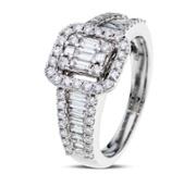Encircling the centre gemstones is a halo of brilliant-cut natural diamonds, with additional diamonds extending along the shoulders to enhance the ring's overall brilliance. These diamonds have a combined weight of 0.38 ct and provide a bright contrast against the rich tones of the teal sapphires. Natural diamonds are widely admired for their rarity, durability and enduring prestige, qualities that have ensured their lasting prominence within the world of fine jewellery.