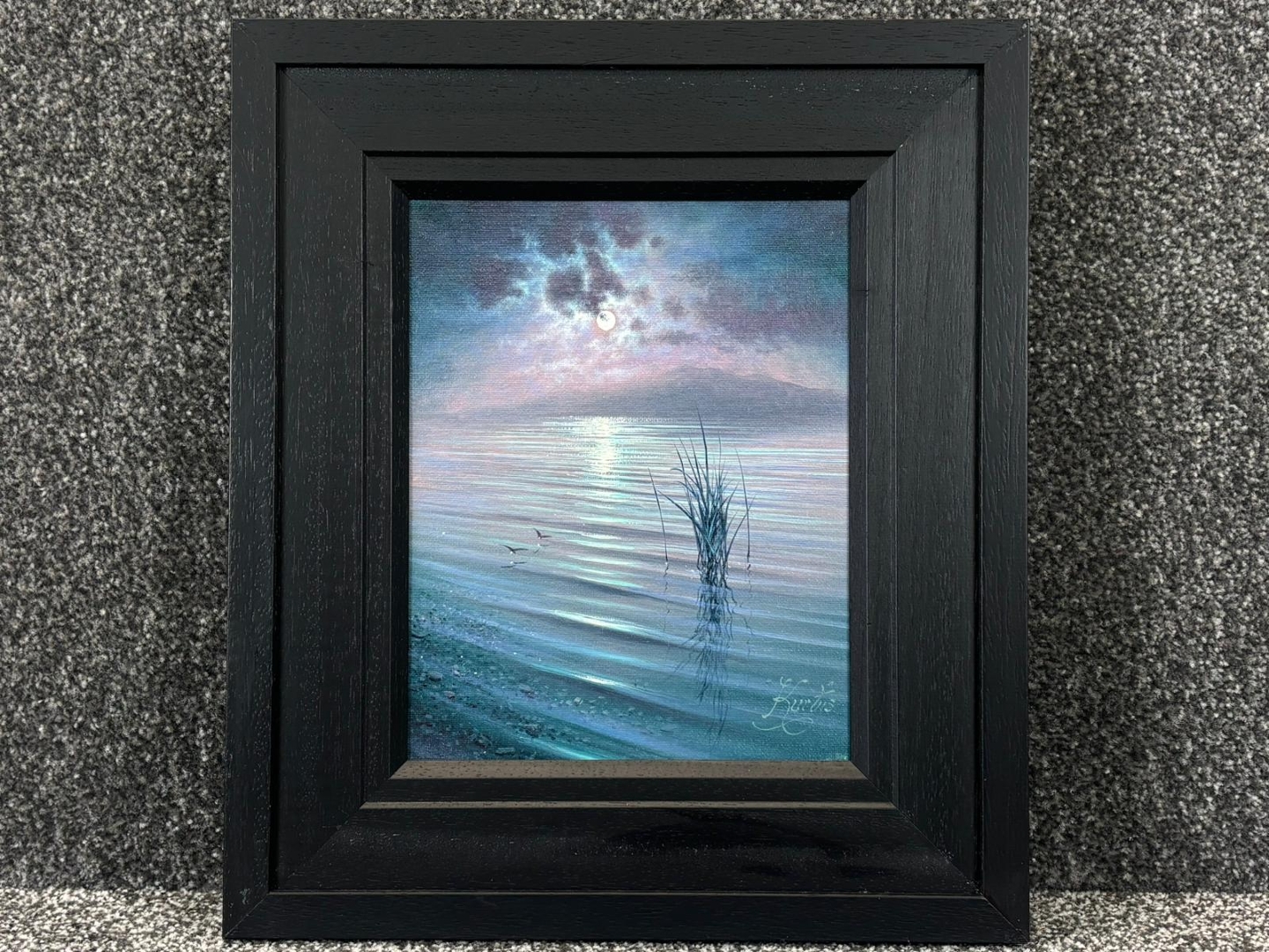 A well-proportioned artwork measuring approximately 10 inches in height and 8 inches in width, presented in a bold, dark frame that complements the tonal depth of the painting. A highly decorative and collectible piece, ideal for lovers of peaceful landscapes and Kurtis’ atmospheric style.