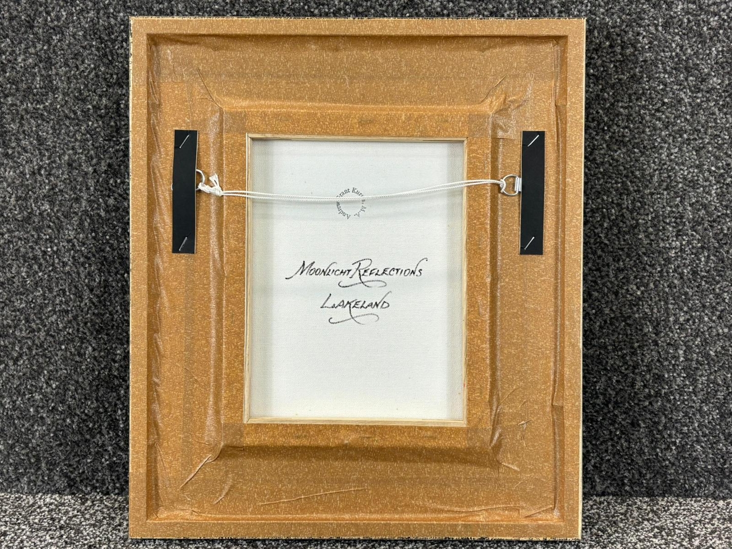 A framed original oil painting by Andrew Grant Kurtis titled 'Moonlight Reflections Lakeland'. Approx 10" height, 8" width.