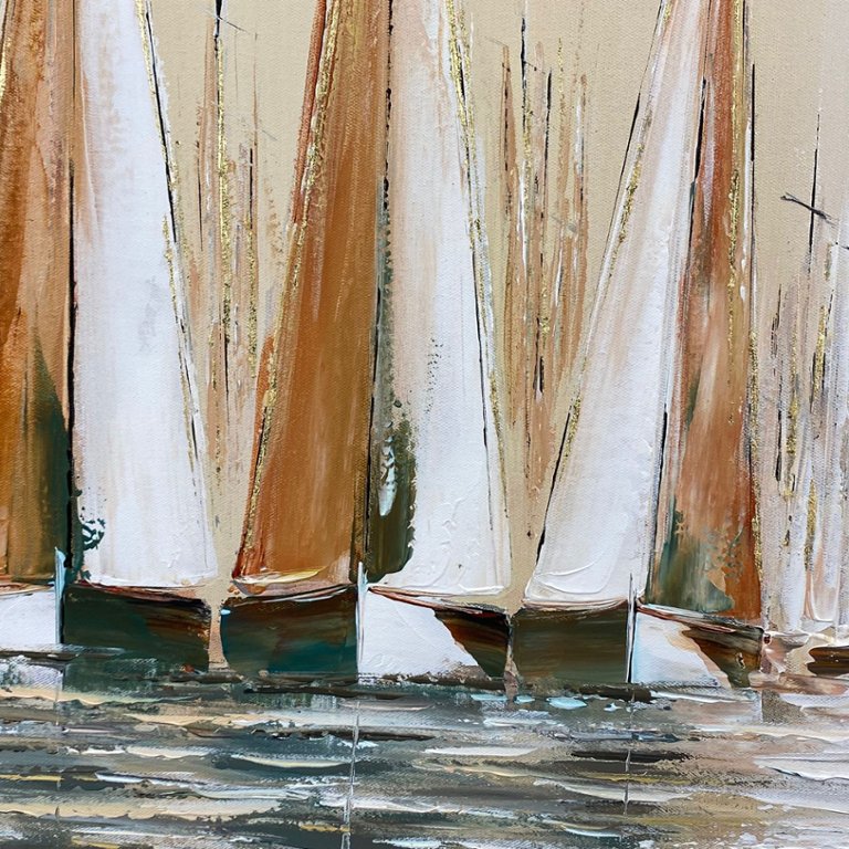Dennis's masterful brushwork captures the essence of maritime elegance, depicting a scene of graceful yachts navigating the tranquil waters. Each brushstroke is imbued with a sense of movement and vitality, as if the vessels were caught in a gentle breeze, their sails billowing against the backdrop of the horizon.