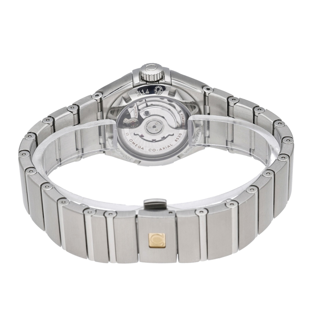 An Omega Constellation, reference 123.10.27.20.55.002, is a refined ladies’ timepiece that showcases both elegance and precision. The 27mm stainless steel case is paired with an integrated steel bracelet, secured by a butterfly clasp, for a seamless and comfortable fit. Its domed scratch-resistant sapphire crystal, with anti-reflective treatment on both sides, ensures clarity and durability. The case measures 12.25mm in thickness, with a 30.10mm lug-to-lug span, giving it a balanced presence on the wrist. The water resistance of 100 metres adds practical versatility.