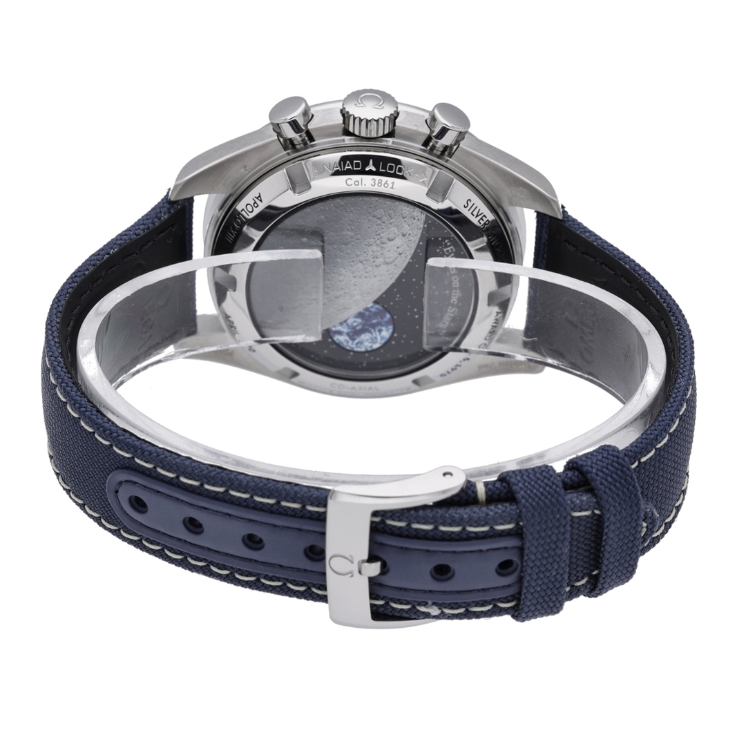 At its core is the Omega Co-Axial Master Chronometer Calibre 3861, a manual wind movement visible through the sapphire caseback. Certified by METAS, it offers exceptional precision, anti-magnetic resistance up to 15,000 gauss and a 50-hour power reserve. The caseback animation — where Snoopy travels across the lunar surface when the chronograph is engaged — pays tribute to Omega’s NASA heritage and the Silver Snoopy Award received in 1970 for its role in the Apollo 13 mission.