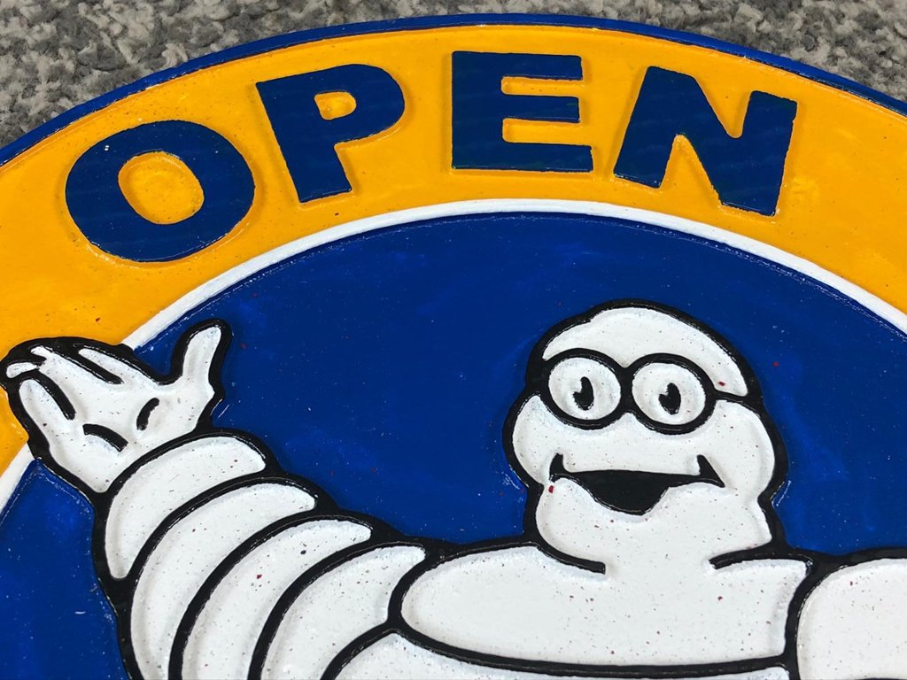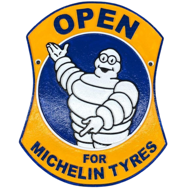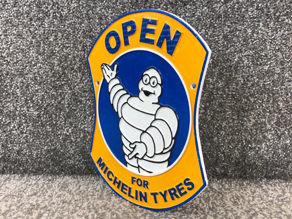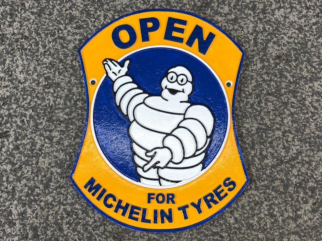Featuring the famous Michelin logo and branding, this plaque evokes a sense of nostalgia and admiration for the company's rich history and heritage. Whether you're a fan of vintage automotive memorabilia or appreciate the significance of the Michelin brand, this plaque is sure to be a standout addition to any collection.