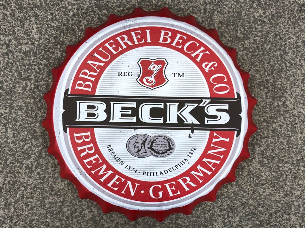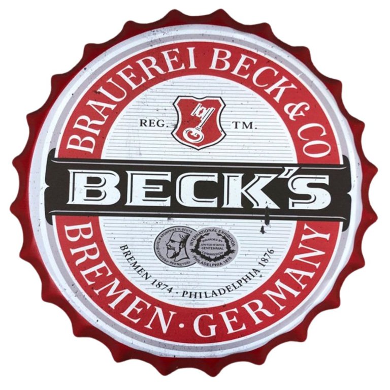 With its oversized dimensions and eye-catching appearance, Beck's bottle-top wall hanging is certain to command attention wherever it's placed. Whether you're a beer aficionado, a fan of the brand, or simply seeking a distinctive decorative accent, this oversized bottle-top will undoubtedly become a focal point in any room.