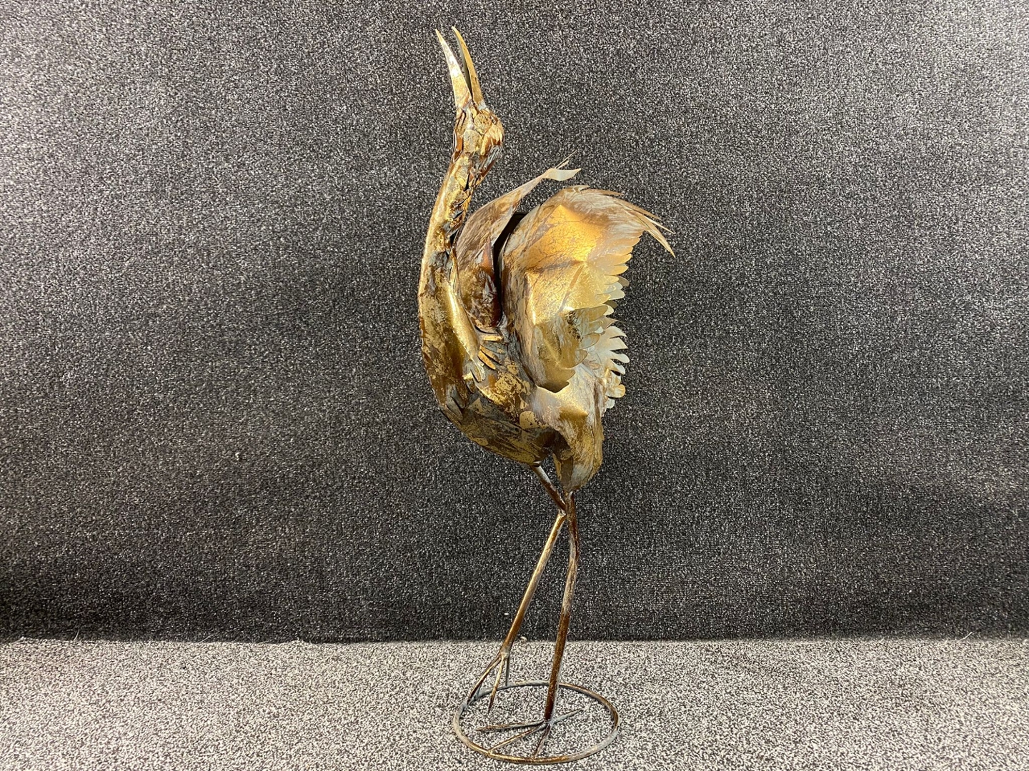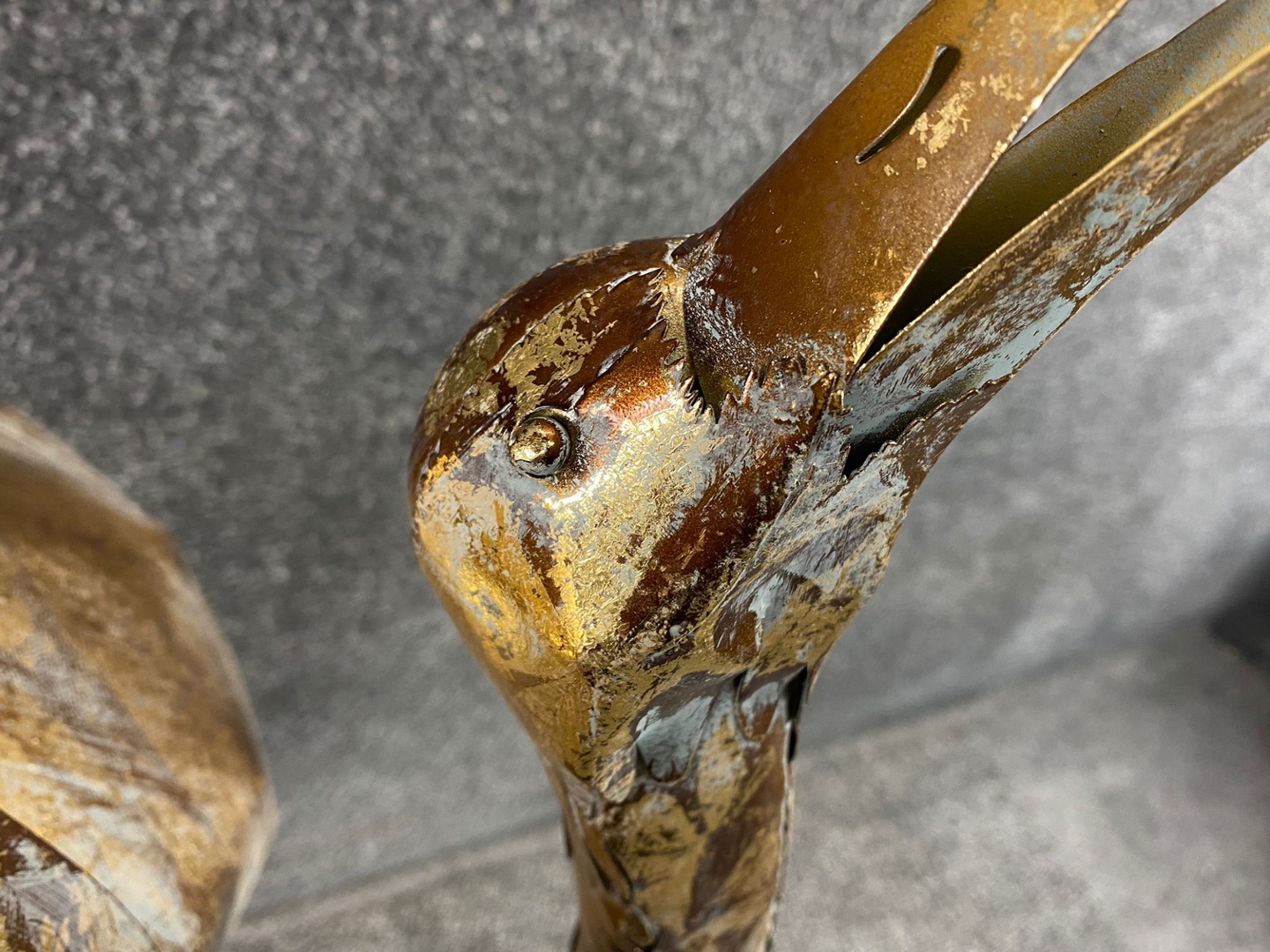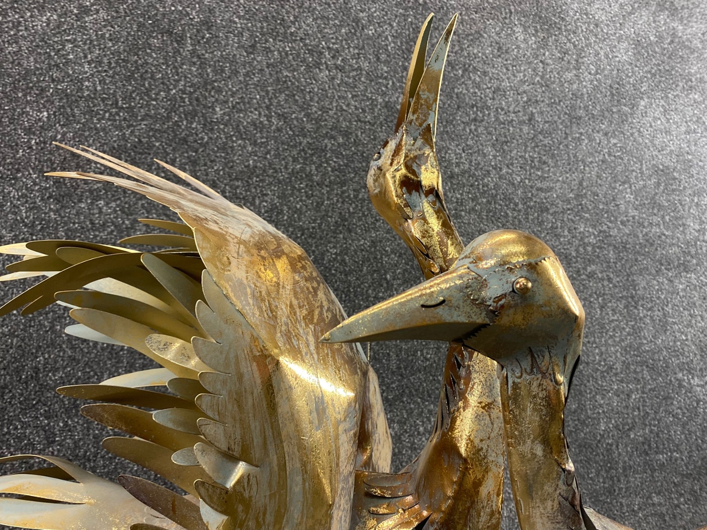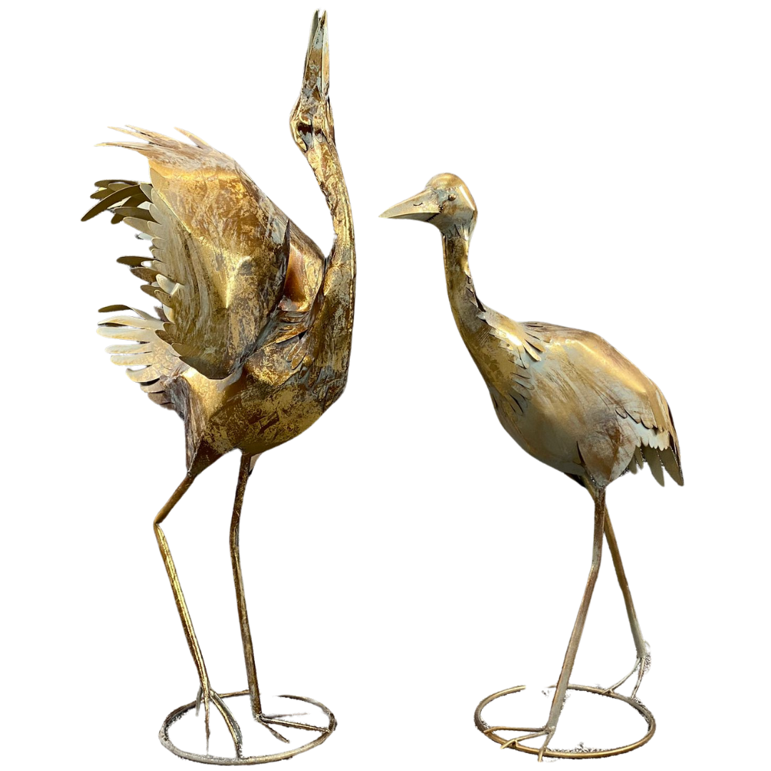 A pair of floor standing garden Gold Cranes. Approx 37" height, 25" width,15" depth.