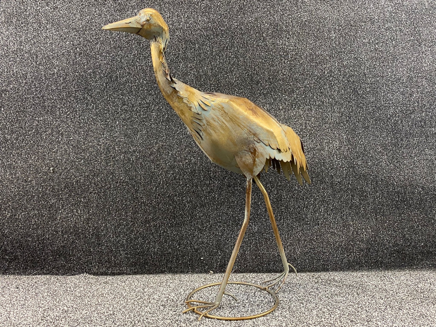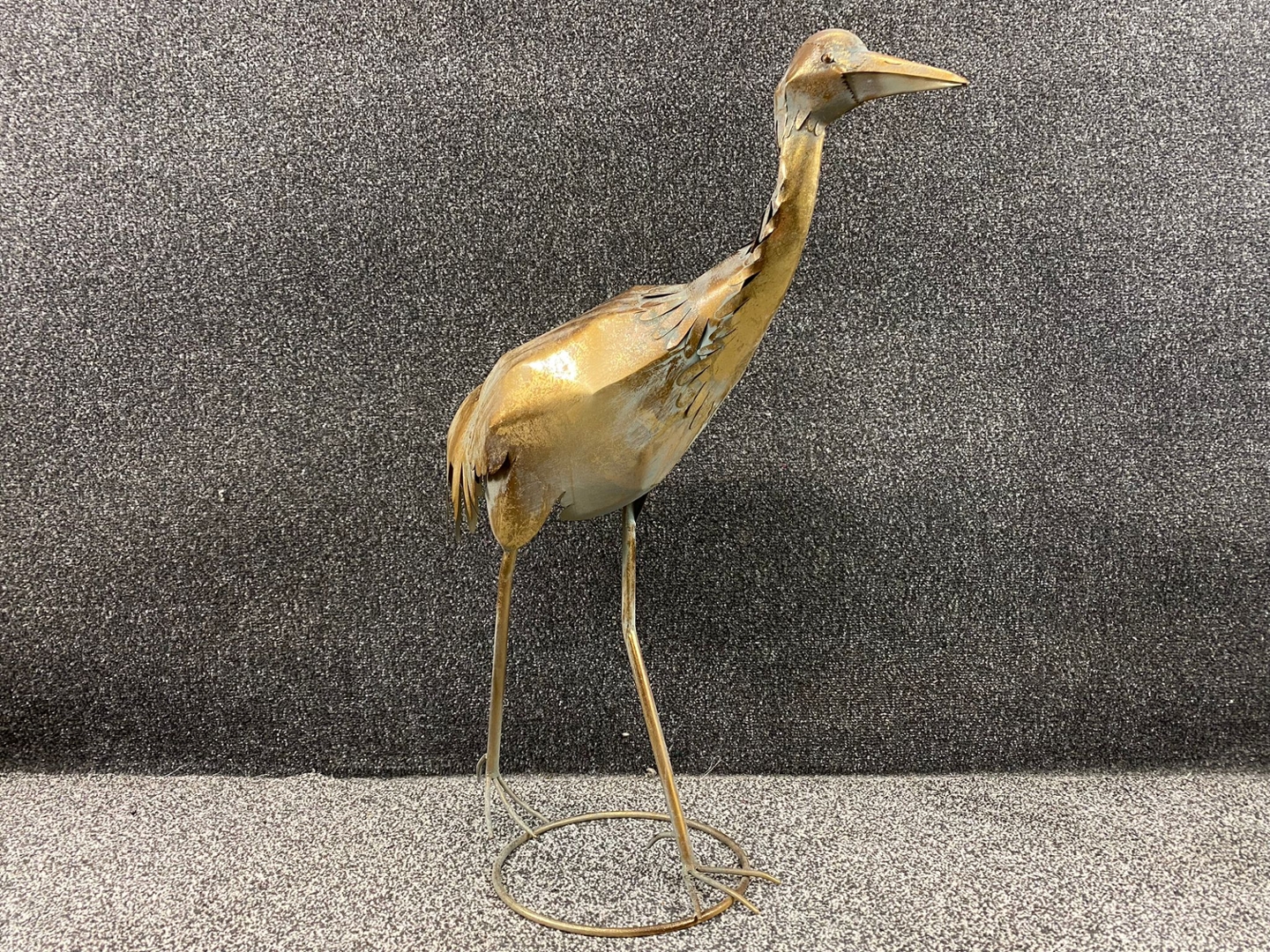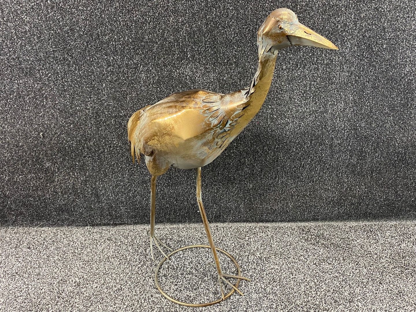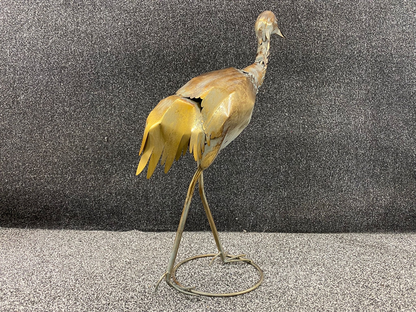 A pair of floor standing garden Gold Cranes. Approx 37" height, 25" width,15" depth.