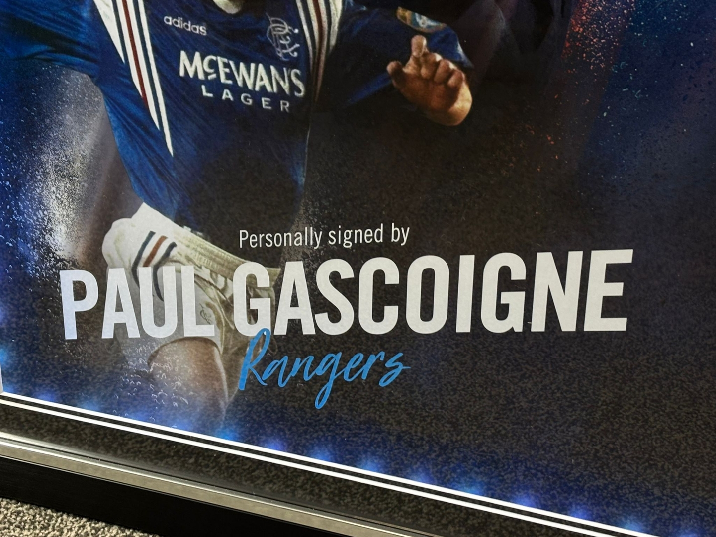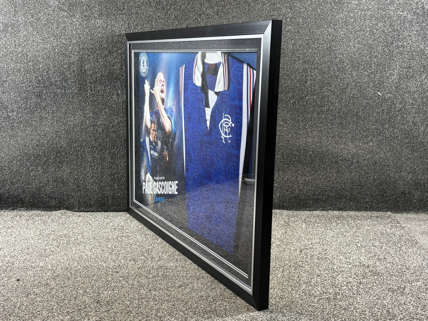 - > Paul Gascoigne Signed Rangers Shirt & Picture Montage