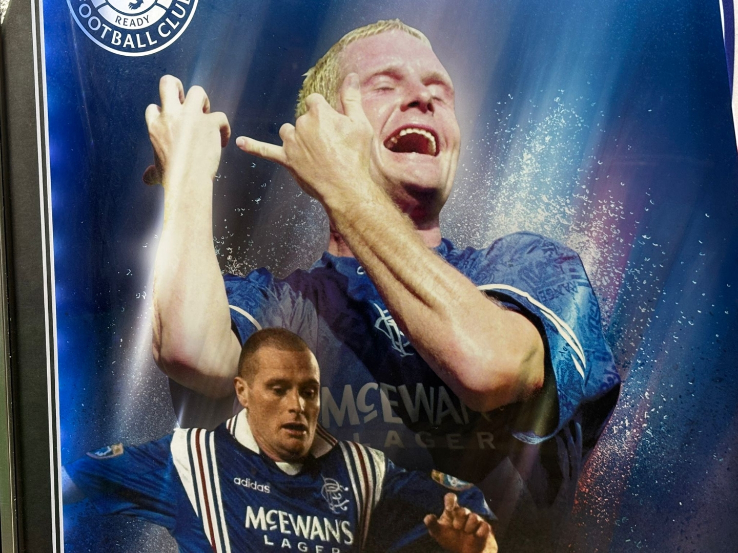 Encased in a stylish presentation frame measuring approximately 77cm in height and 109cm in width, this memorabilia masterpiece is ready to become the centrepiece of any collection. Authenticated for absolute confidence, it’s the perfect tribute to a footballing icon whose legacy transcends generations. A dream acquisition for Rangers fans and collectors of classic British football history alike.