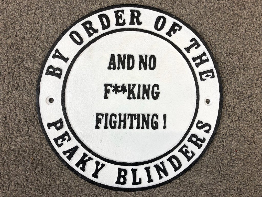 - > Peaky Blinders Wall Plaque titled 'No Fighting'