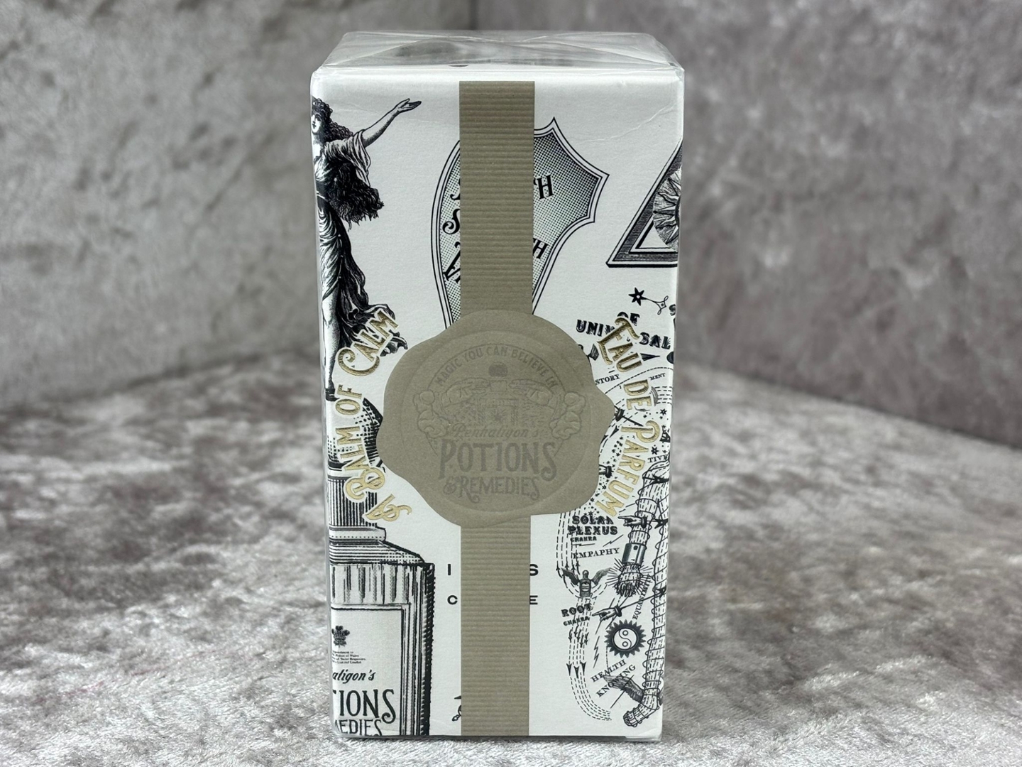 A bottle of Penhaligon's Potions & Remedies A Balm of Calm Eau De Parfum in a presentation box.