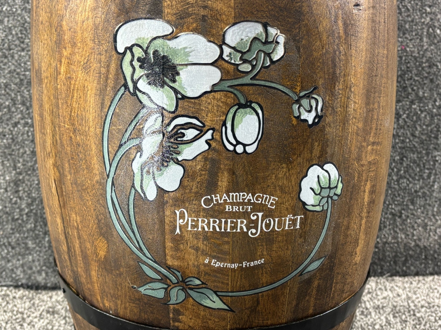 The stunning floral design, featuring the iconic Perrier-Jouët anemone motif, adds an artistic and timeless appeal. This design, synonymous with the brand’s dedication to craftsmanship and beauty, enhances the stand’s uniqueness. Whether used to store umbrellas or walking sticks or as a statement décor piece, this barrel exudes an air of French luxury and sophistication. Ideal for collectors of champagne memorabilia or those seeking an elegant storage solution, this stand is a conversation-starting addition to any interior.